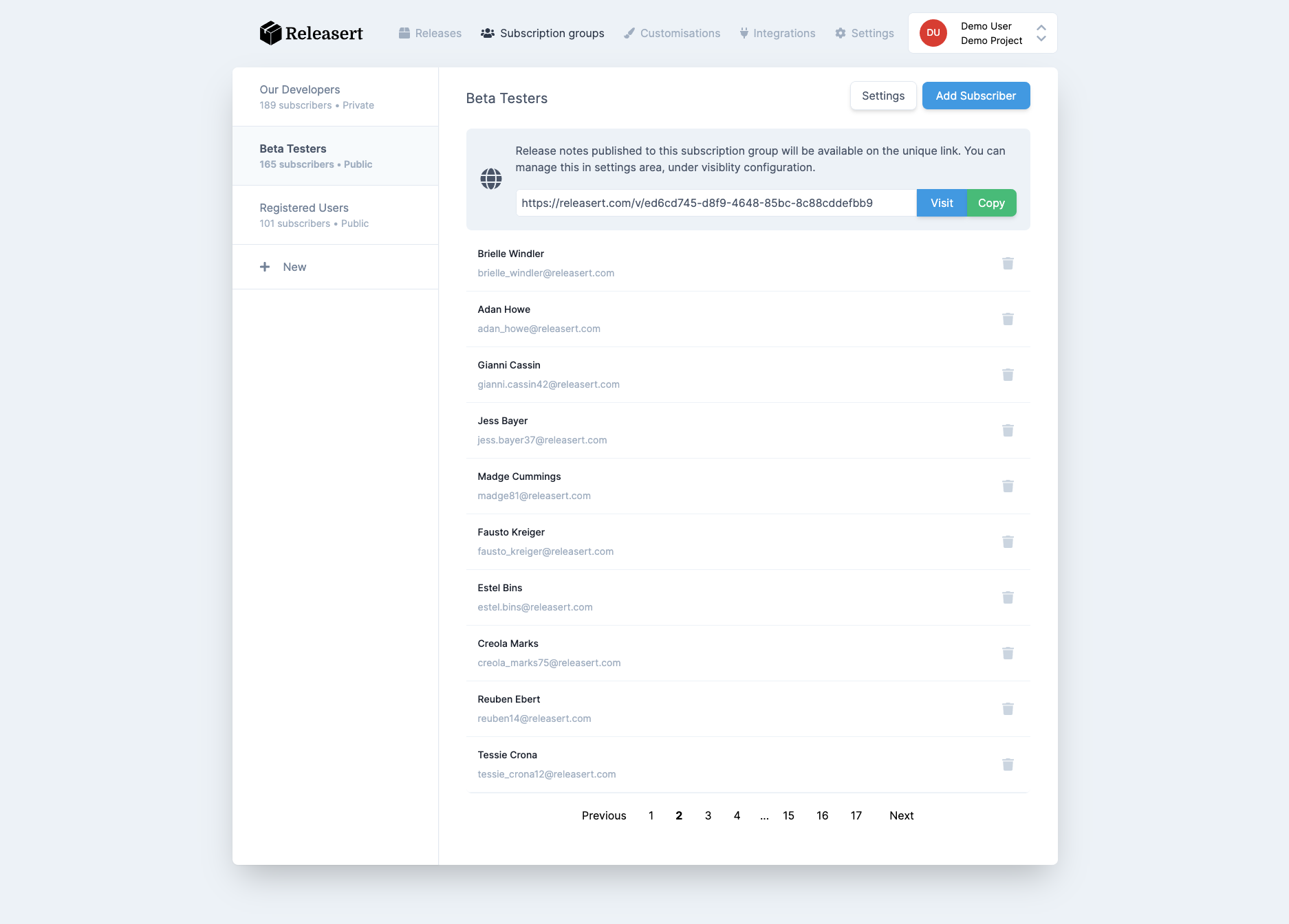 A dead simple way to send product updates and set up a changelog website. We integrate with Trello to make the whole process easier (and planning to add more integrations in the future). Apart from email delivery, we support web changelog and in-app widget is coming soon!