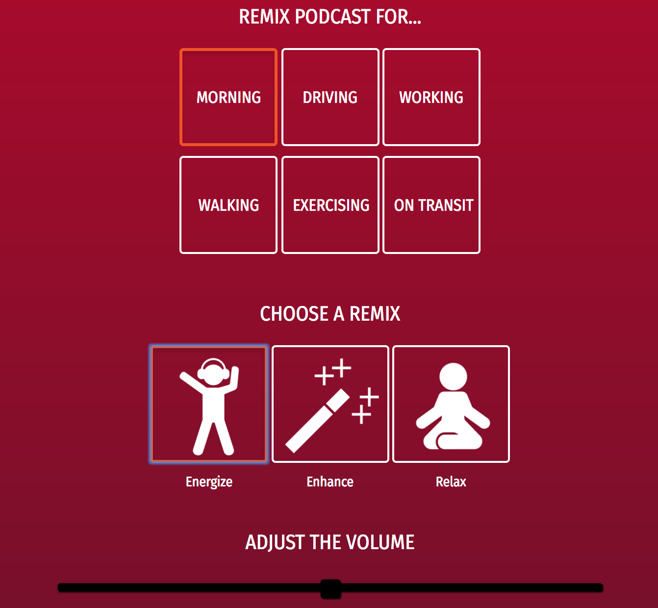 RemixPod is on a mission to customize your favourite audio content. With our first iteration, we’ve created the ability to layer music behind any podcast to energize, enhance, or relax your listen. Users add a beat to their podcasts for a better workout, or a relaxing rainstorm to help fall asleep. With the launch of our mobile app, we’ll be adding more and more features based on user feedback and our cunning ideas. Help us build the future of audio and create a tool that brings together all your favourite content into a customized listening experience Our vision is to become the leading app that customizes the perfect audio listening experience.