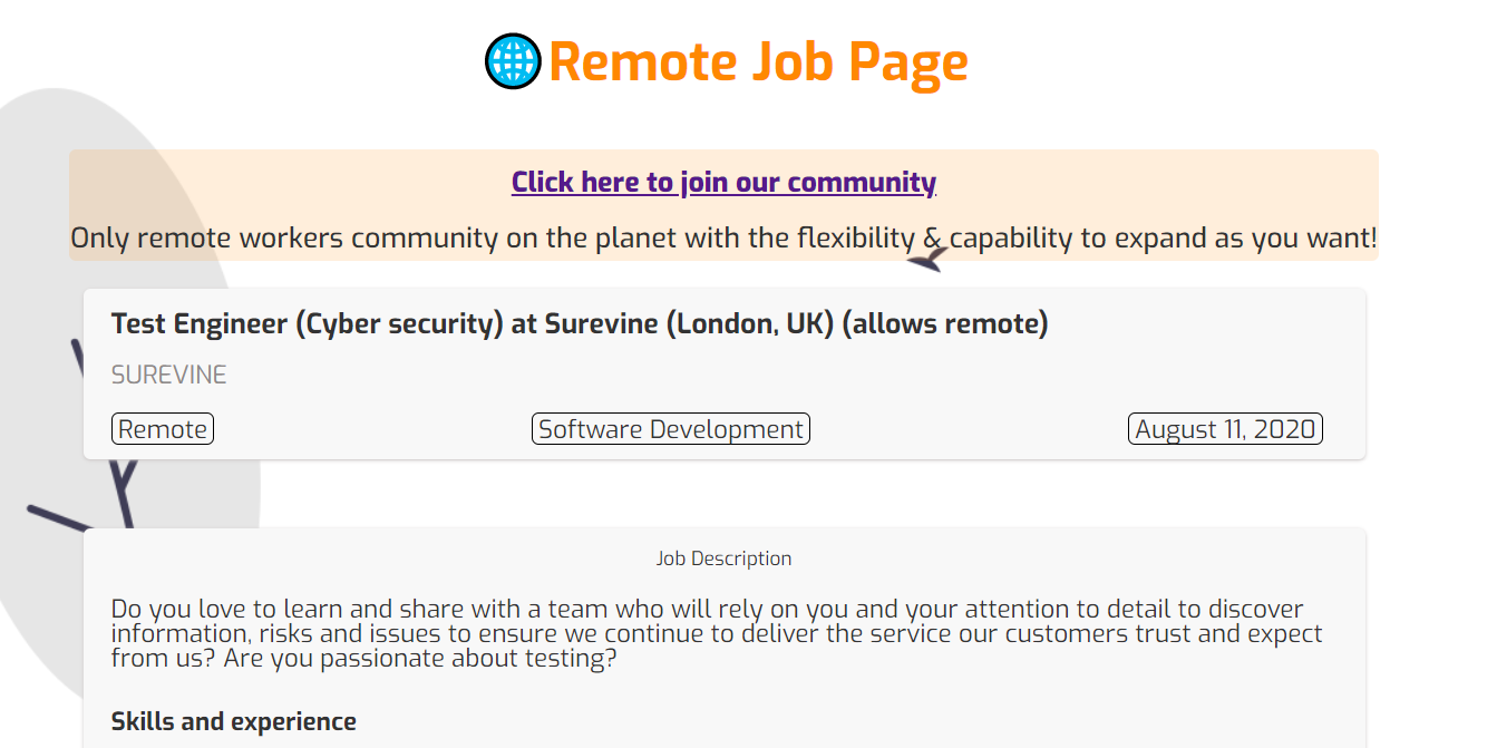 My name is Chandra Prakash. I'm the creator and founder of Remote Job Page. ‍ Background: ‍Recently I saw lots of postings on LinkedIn from my fellow connections, that they were being laid off due to covid-19 situation and are looking for help to get a job. In order to help them I started curating remote jobs only for Indians in a telegram channel but later I found that's it's not only in India, it's worldwide, so I started doing it for the whole world. Birth: ‍Telegram groups/channels has one big limitation. You cannot search them on web. To bridge that gap and to make it more formal I created REMOTE JOB PAGE where all of these remote jobs are enlisted for 7 days.