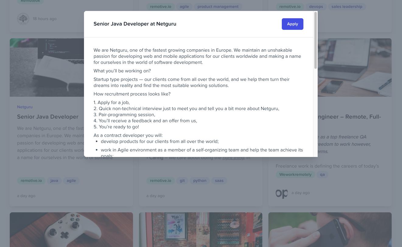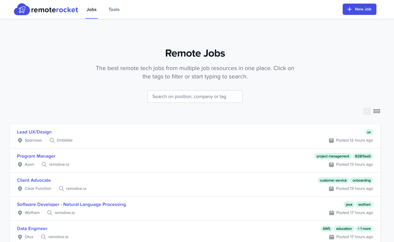 RemoteRocket is a daily updated list of new remote jobs from the most popular sources on the web.