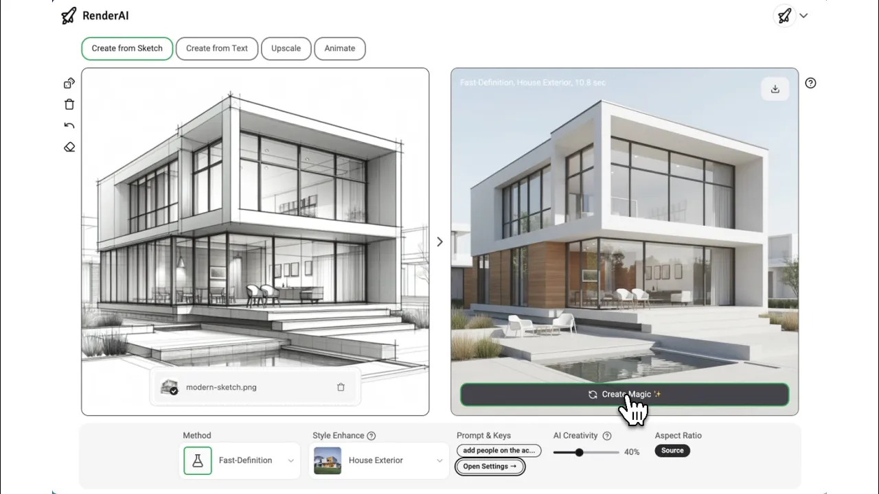 RenderAI is an AI-powered platform designed to help architects, designers, and creative professionals bring their ideas to life in seconds. Instead of spending days working with rendering software or outsourcing visualization to external studios, RenderAI makes it possible to generate stunning, photorealistic images and videos based on sketches in just a few seconds. Because everything runs directly in the browser, there’s no need to install heavy software. Quick process that gives results in 3 steps: 1) ✍️ Upload a Sketch—Start by uploading a sketch, concept or screenshot. 2) 🎨 Guide the AI—Add some options to help the AI models better understand your needs. 3) ✨ Create Magic—Get high-quality rendering that looks ready for presentation. One of the biggest advantages of RenderAI is its balance of professional output and ease of use. Traditional rendering tools require technical expertise, hours of modeling, and powerful machines to deliver high-end results. Other AI Rendering tools provide with numerous models and options, making non AI-experienced users out of what path to take. RenderAI takes a different approach — the platform’s interface is simple, intuitive, and designed for quick experimentation. Users can guide the AI with styles, materials, and layouts to test ideas rapidly, producing multiple design options in the time it would normally take to create a single render. Whether you are preparing a client presentation, pitching a concept, or developing marketing visuals, RenderAI gives you production-ready outputs that can be downloaded instantly with full commercial rights and no watermark. Beyond speed and simplicity, RenderAI helps teams and individuals improve collaboration and decision-making. Instead of waiting for external renderings, architects and designers can visualize options on the spot, compare alternatives, and refine projects in real time with clients or stakeholders. The ability to create professional visuals so quickly saves time and reduces costs while unlocking new opportunities for creativity. RenderAI has already been adopted by professionals across architecture, real estate, construction, and design who want to present ideas more effectively and stay ahead of the competition. Trusted by thousands of professionals and students from over 30+ countries and 20+ universities worldwide. By combining artificial intelligence with a user-friendly interface, RenderAI is redefining what’s possible in design visualization.