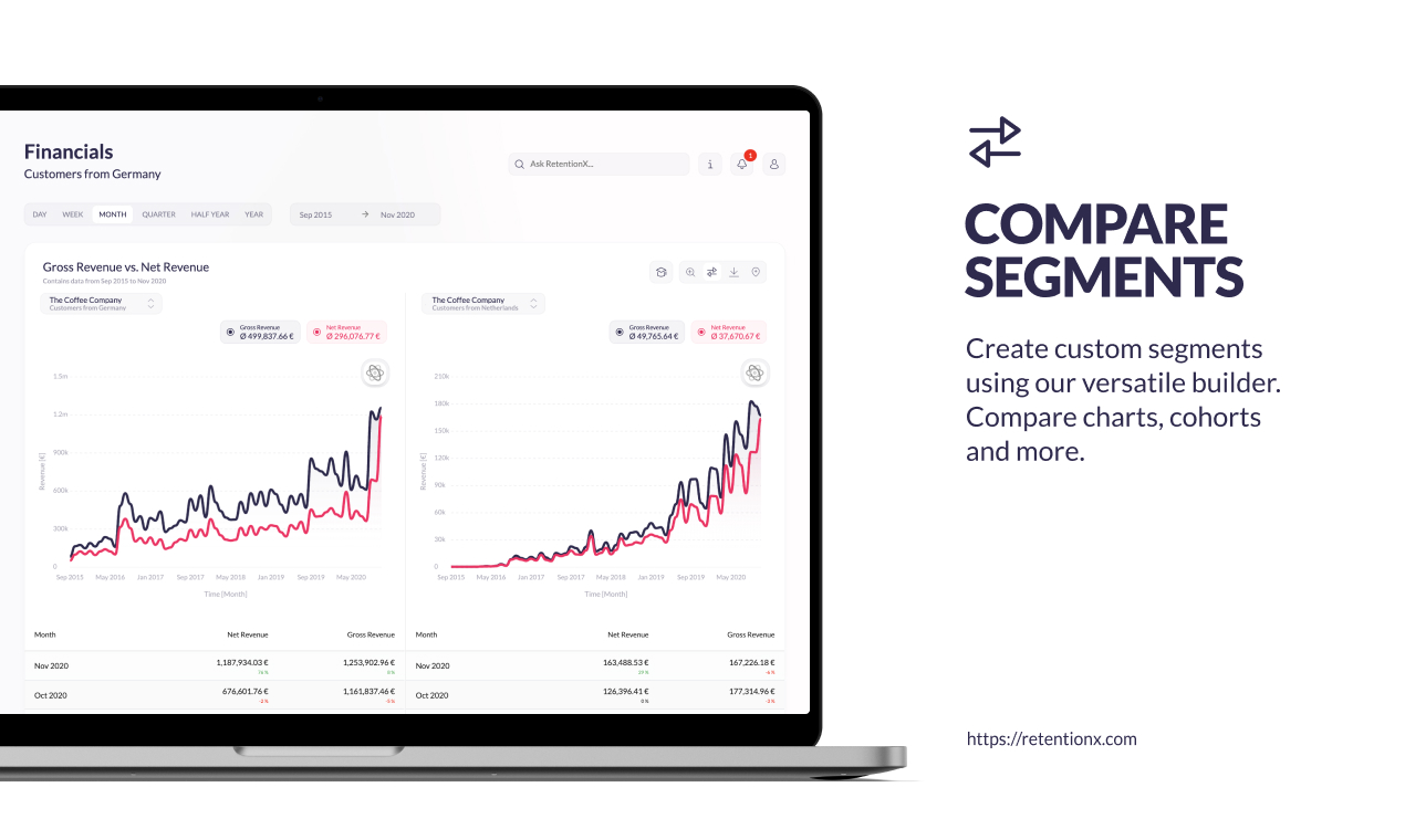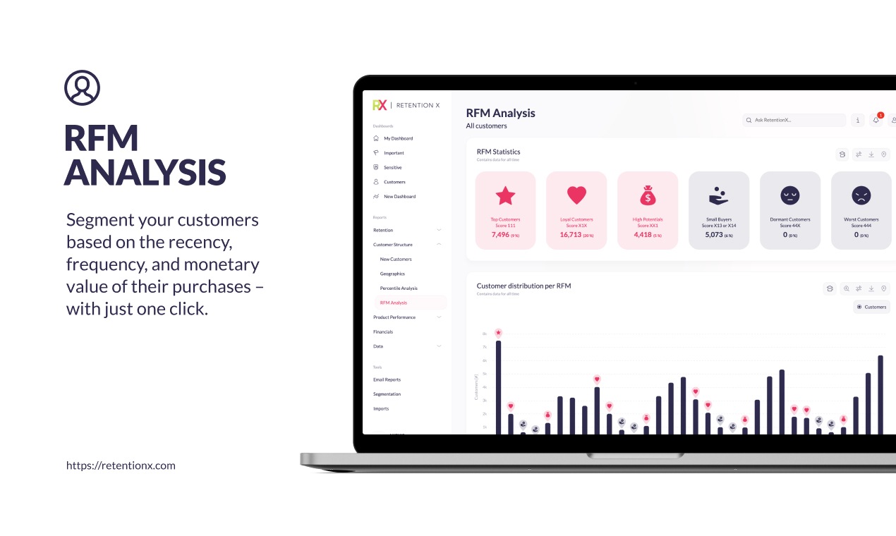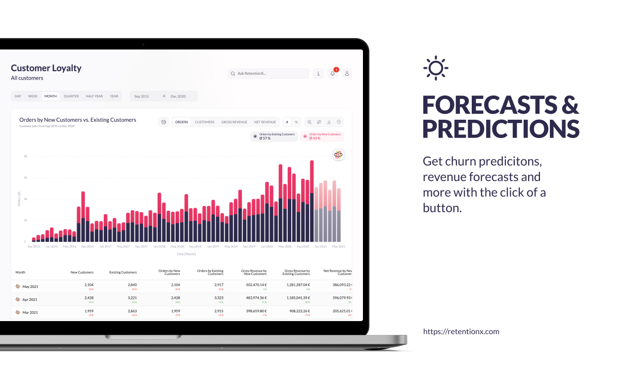 Our story I have spent the last 12 years of my career building e-commerce companies. As an IT guy, I know all the pains of working with data, investor reporting and business intelligence. It is still in most parts a manual job that eats a lot of time, requires highly skilled and expensive resources, and is error prone. These errors lead to wrong business decisions more often than they should. We developed RX as an in-house solution for one of my companies. When I saw the impact it had on our daily work and decisions, it was clear that we had to make a business out of it. 100k+ lines of code and 3 years later, RetentionX was born. We managed already over 60M+ transactions in our beta period. We are self-funded & bootstrapped to this point. What is it about? RetentionX is a software that provides you with the most advanced, but out-of-the-box data analysis that could only be done by months of manual work by a specialized data science team. Who needs RetentionX? Any transactional business (especially e-commerce) can benefit from our solution. It enables any business owner from day one to identify the key value drivers of their business, detect leaks and make better decisions as key metrics change. Is it just for Shopify user? No. We have developed RX to work with all kind of transactional data. Shopify is the first direct integration we offer. But any other store or business can still connect with us through our API or scheduled imports. Please feel free to contact me at [email protected] to discuss your setup. Hottest Features - 100+ built-in analyses - Segmentation - Prediction & Forecast - Email reports - Benchmarking - Anomaly detection - AI insights Famous Analyses - RFM Analysis - Cohort Analysis - Customer Lifetime Value Prediction - Churn Prediction - Cross-Selling Analysis - Order Gap Analysis - Return Prediction - and 100 more... Why is it 'AI'? We all know AI is a buzzword and misused everywhere, so let me touch on that briefly: RX uses a mix of machine learning and AI. We build and train models with hundreds of algorithms to find the best-fit exclusive for your business case. They are used to answer questions such as: - What will my net sales be at the end of the year? - Which items are likely to be returned? - Which customers are at risk of churn and how high is this risk? - How valuable is a specific new customer to my business in its lifetime?
