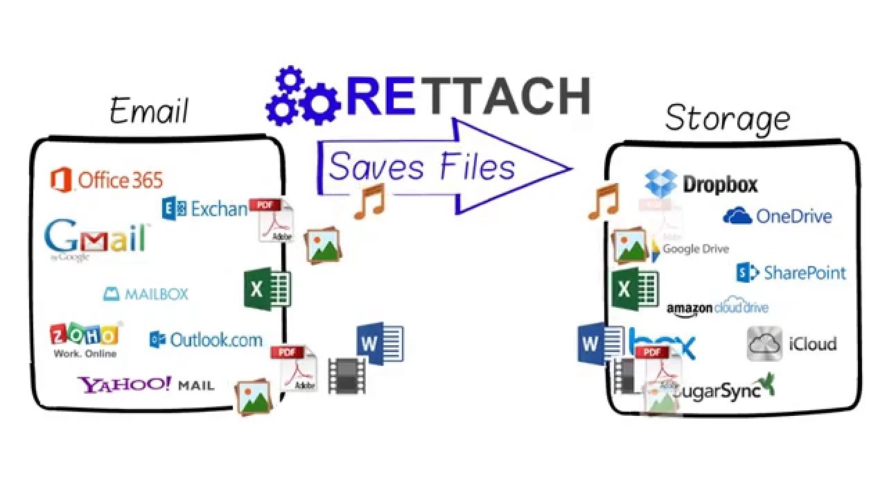 Rettach is a service that enables automated and seamless connection from email service providers to cloud storage providers. It automatically organizes attachments from past emails and saves them to selected cloud storage providers and will continue to sync from old to present, organizing files based on a user or organization’s rules. Rettach consolidates all your files from all your emails into a single, organized set of folders. You can then access, control, sort, analyze, and act on the data instantly-from your office, the road or home.