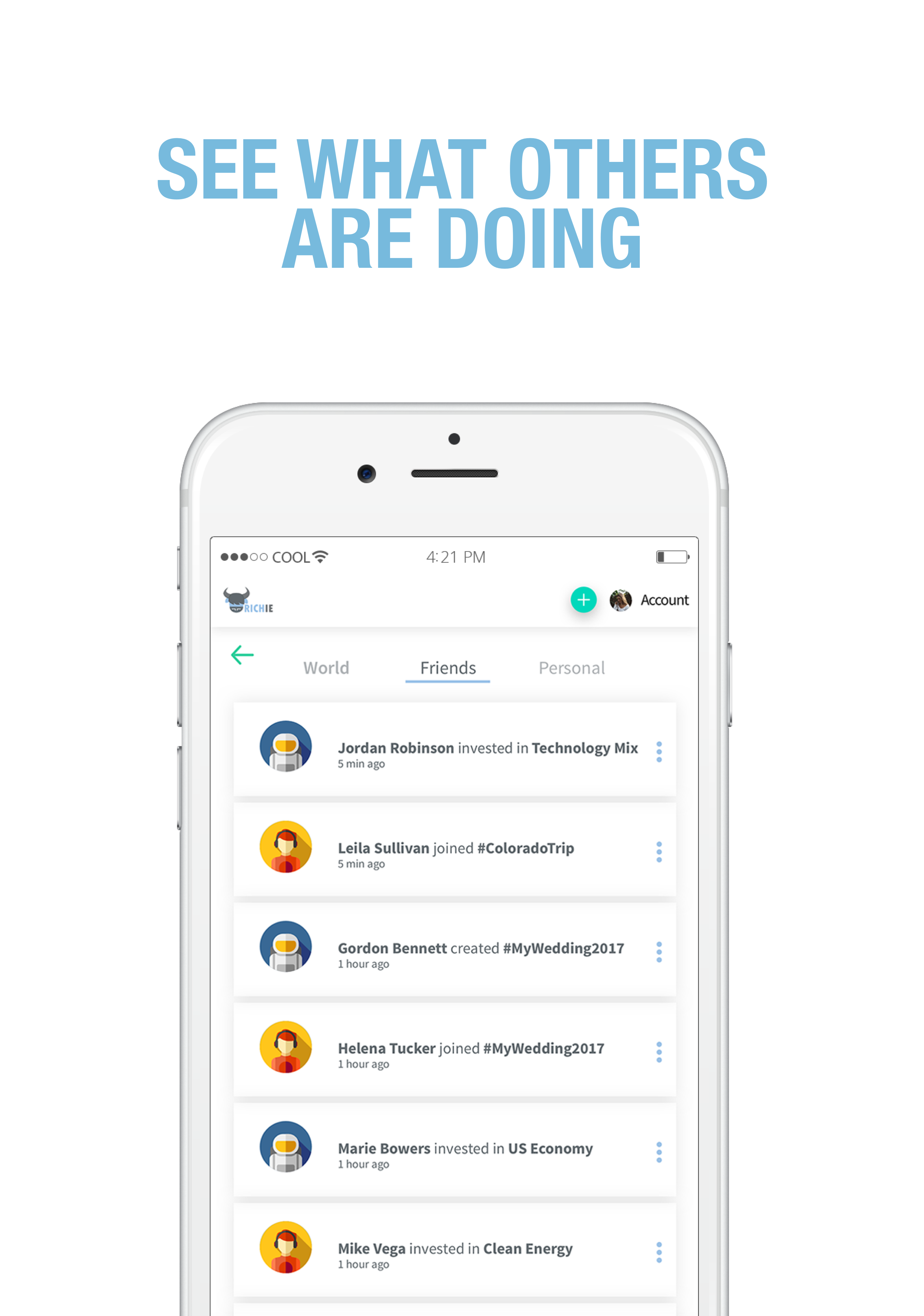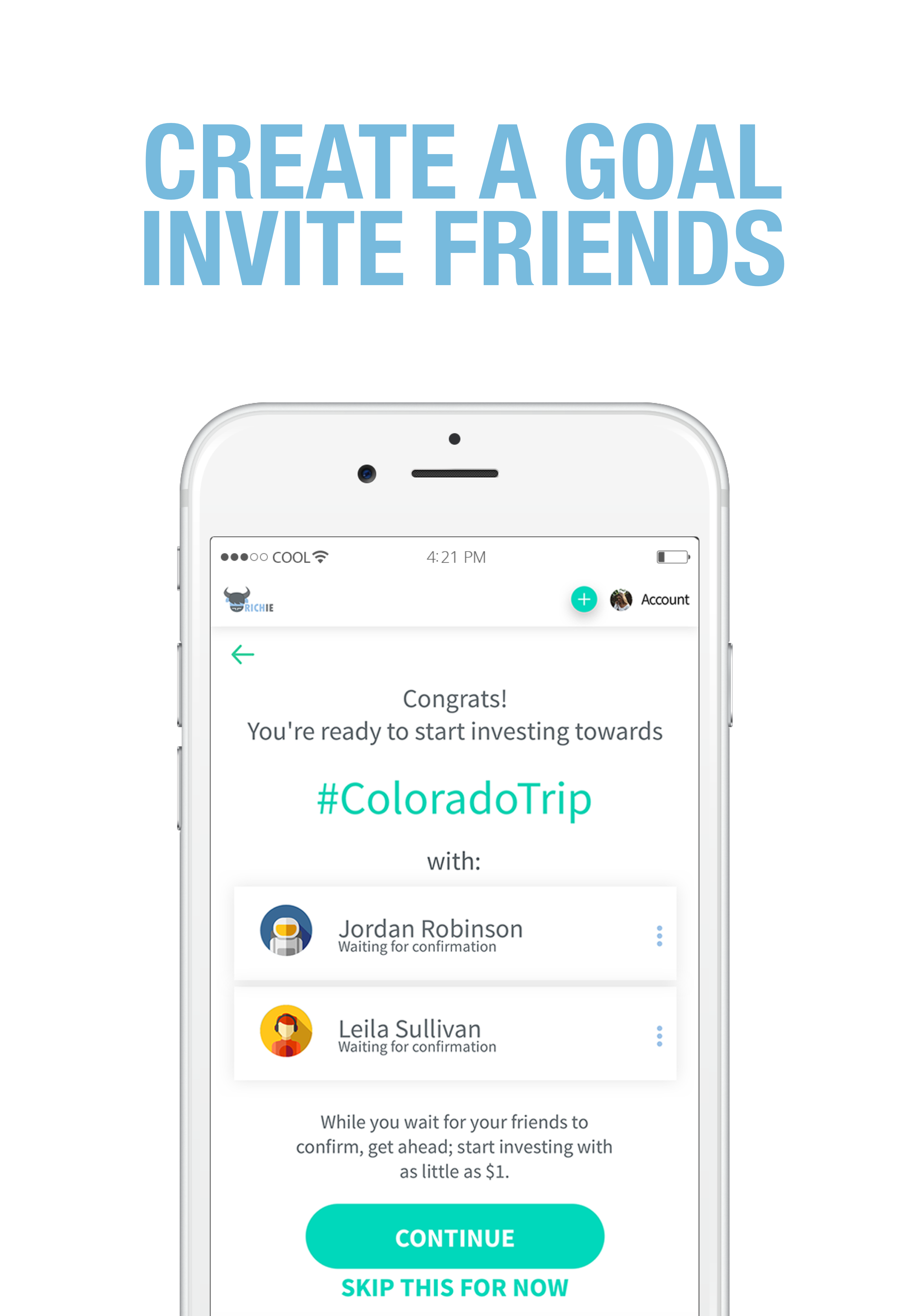 - Users create a common goal - Invite friends and invest towards that goal together - The goal is shared, money is not shared.