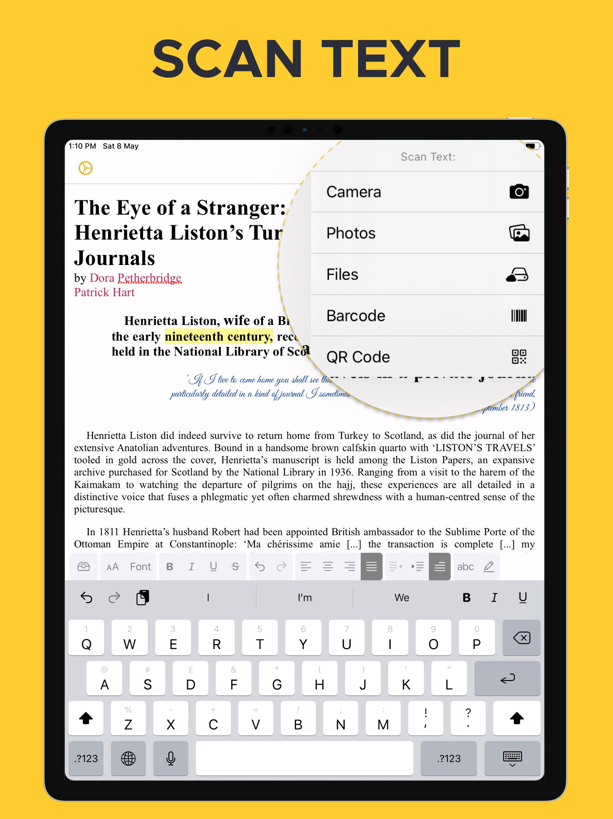 Live Text scanning is coming in iOS 15. Can't wait to experience it now? With this app you will get a flavour of Live Text feature. Scan any document, save it and share it as PDF, image or text! Search, edit and write on scanned files - 150+ fonts available! Convert own writing into PDF.