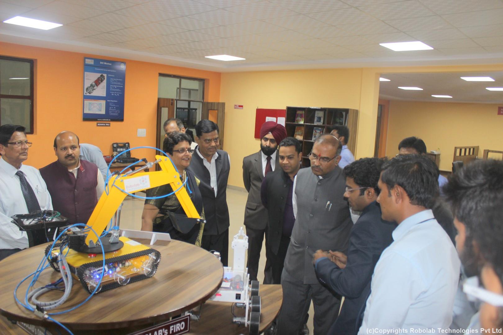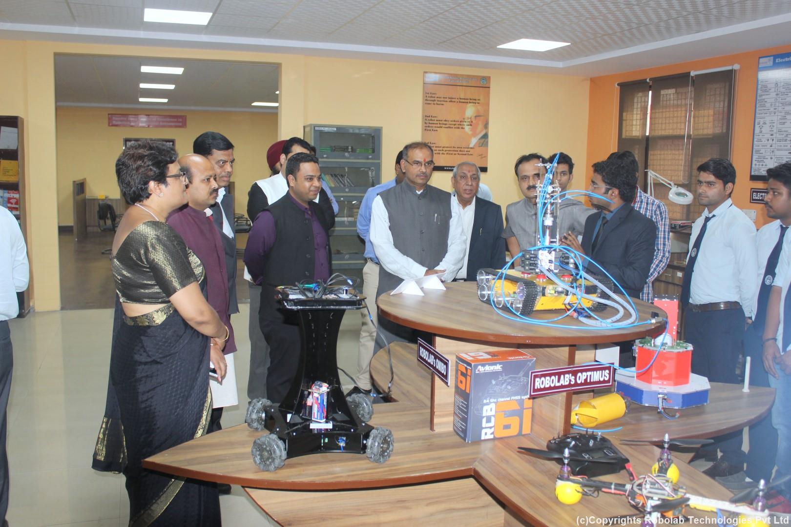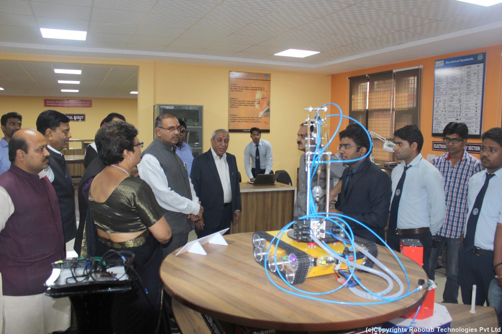 Robolab is your very own, on campus, Centre of Excellence in Robotics and Industrial Automation, tailor-made for you. It is an advanced, state of the art platform to explore, learn and build robots and related technologies. We provide innovative and interactive training by experts consistent with the latest curricula and the industry requirements. This empowers the trainees to successfully run the lab for the benefit of the larger group of students. Robolab is a perfect platform for its users to learn, build and share their ideas. ROBOLAB:- “A perfect platform to explore, learn and build robots” Product Features: Advanced state of the art technical research facility within campus Hands on practical experience along with required theory Consolidation of concepts Industry- institute Interaction Standard guidelines and essentials Superior quality and Advanced robot study platforms Training by Industry Experts Affordable excellence with Quick Return on Investment