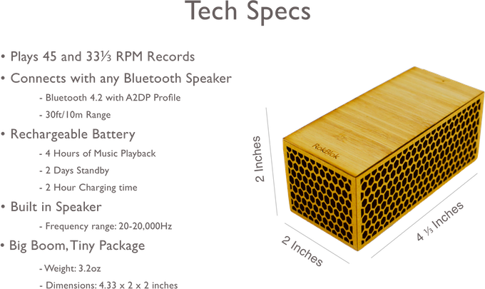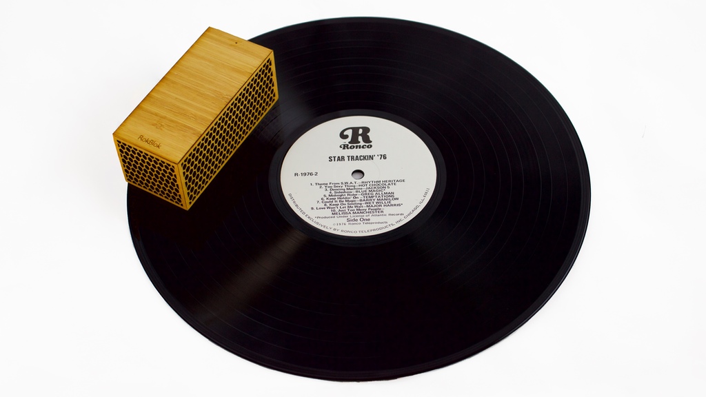 RokBlok is the world’s smallest wireless record player, that plays your favorite records by lightly riding on top of them. Rock out to your favorite albums anywhere, using its built in speakers, or wirelessly connect your favorite bluetooth speakers or headphones for a bigger sound. To use, simply place RokBlok on top of a record and pull the lever to start playing your tunes. Hold your hand above the moving record player to stop. That’s it. -Wireless Yes, wireless! Within a range of 30 feet, RokBlok can wirelessly send music from your record to any bluetooth speakers or headphones. -Portable With its tiny profile, you can listen to your favorite records anywhere you can find a flat surface…yes, anywhere.