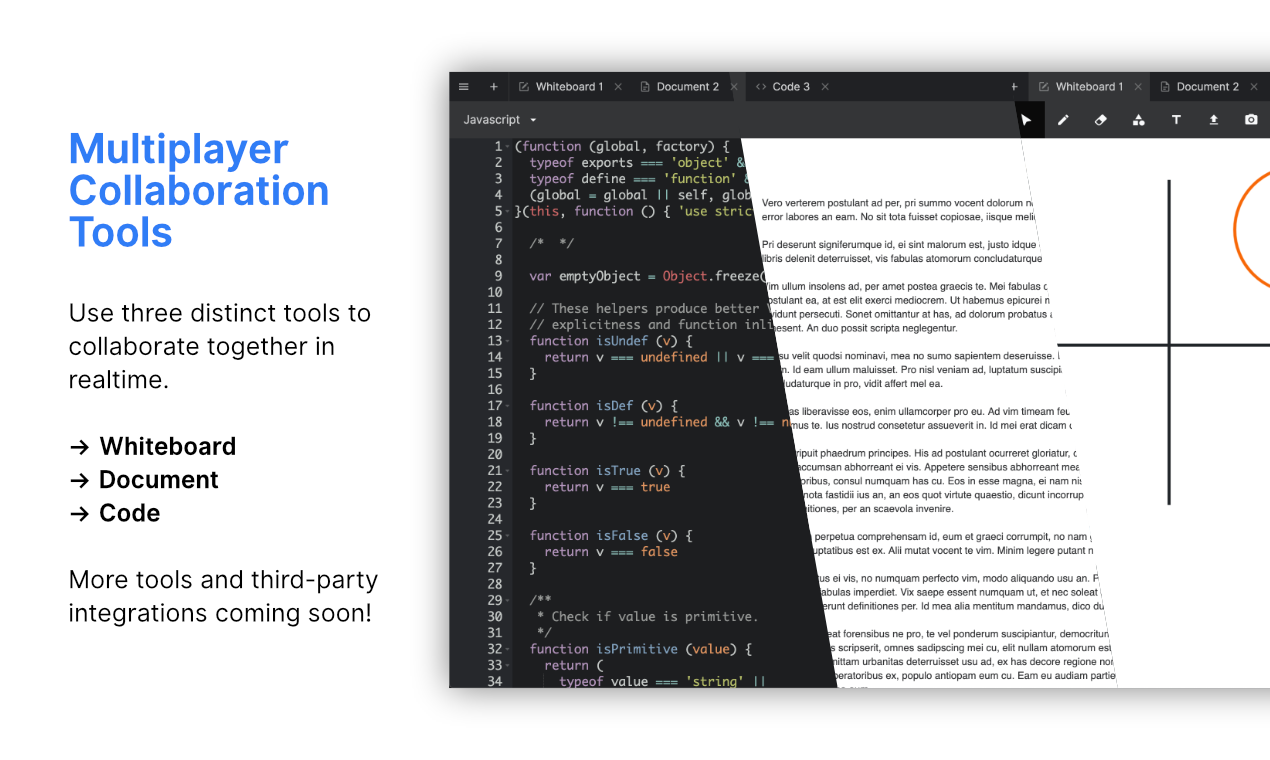 tl;dr room.sh = Zoom + Google Docs. room.sh is a one-click connect, browser-based, video calling platform that combines collaborative tools such as a digital whiteboard, and shared text and code editors.