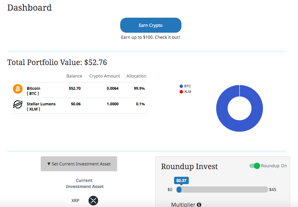 RoundlyX allows users to invest their spare change in Bitcoin and other digital assets. Every time a purchase is made with a linked checking account/card, the purchase is rounded up and the spare change amount is invested in a pre-set allocation of digital assets. For example, a member spends $1.50 on a cup of coffee, then the transaction is run for $2 with 50 cents invested.