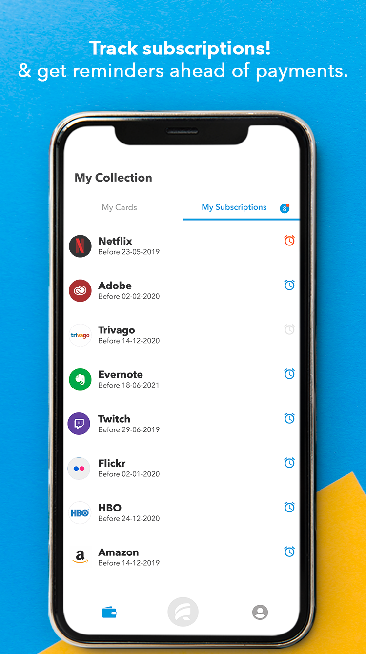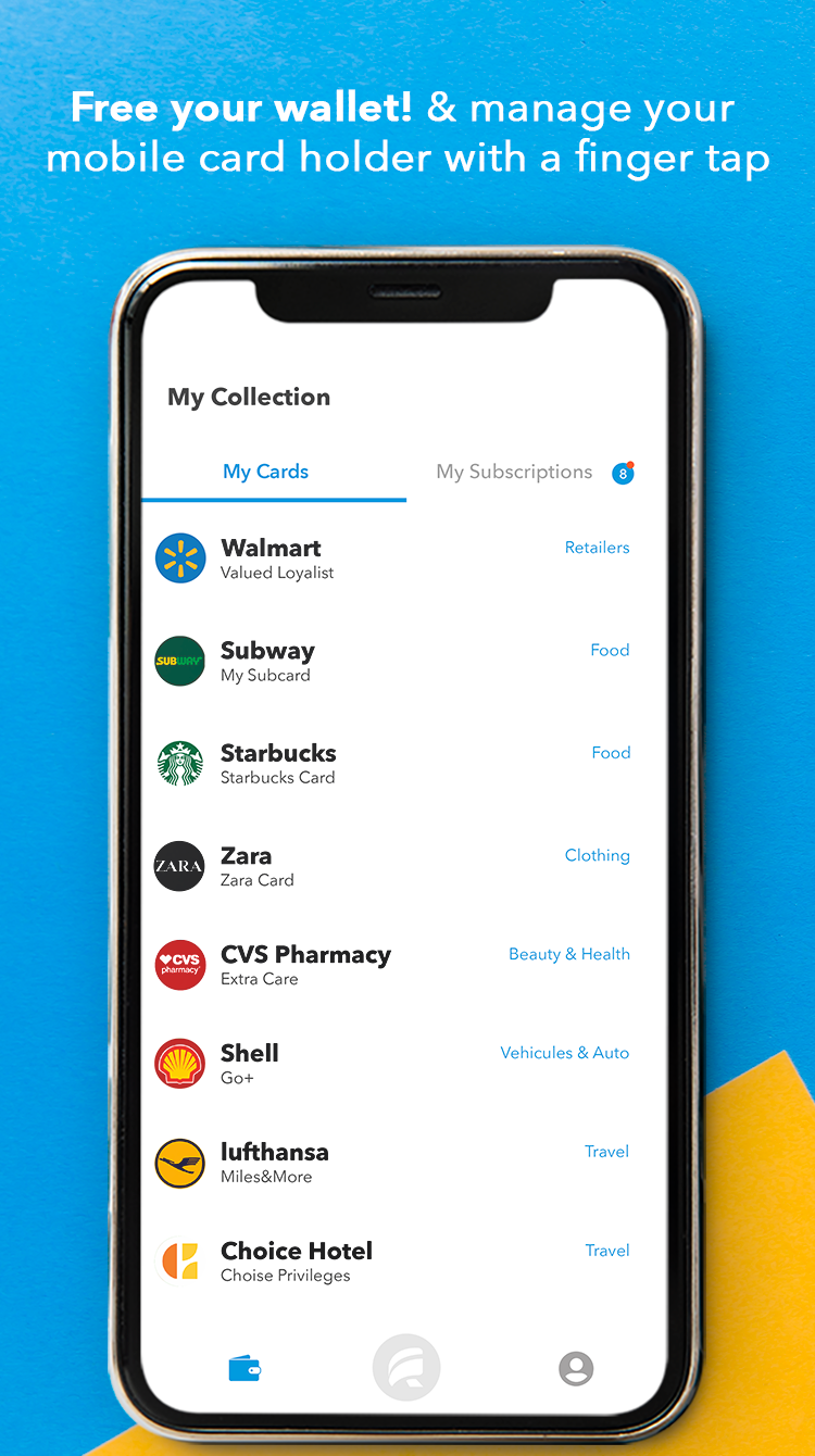 RymCard is a 2 in 1 free app that helps you virtualize all your loyalty cards and track services you are subscribed to, all in one place. Available for both Android & iOS devices.