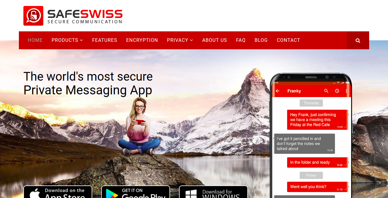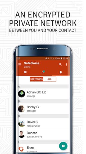 SafeSwiss® is the world’s most comprehensive secure solution for smartphone, tablet and computer communications, providing complete security against the vulnerability within modern communication networks. SafeSwiss® protects your communications from all outside intervention and enables you to confidently communicate with friends and business associates, knowing your personal communications will always be private and that... Your Business Stays Your Business. In total SafeSwiss is a secure communication solution providing end-to-end protected voice conversation as well as messaging system with the following main features: • Secure VoIP-based voice communication between two or more (in form of “add to call” functionality) participants • Secure messaging with the possibility of self-destruction (with user defined time-to-live) of all messages/attachments on both the sender’s and recipient’s device • Secure share of pictures, videos, documents, contacts, locations, etc.
