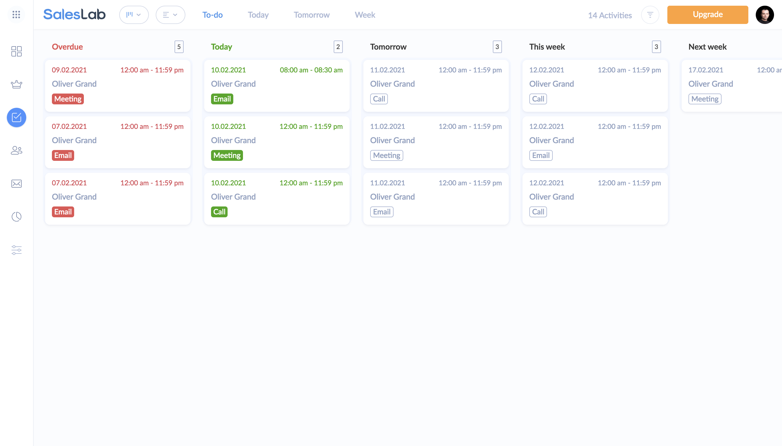 We started working on this project in December 2019. Before that, I had a CRM system integrator company for 4 years. We had received a lot of feedback on various CRMs from our clients. Most of the customers were unhappy with too complicated UX and outdated interface design. So we decided to create our own CRM with better usability and modern interface design. We are now launching a beta version of SalesLab CRM and offer you a 180-day Trial version saleslab.promo . SalesLab CRM can benefit sales teams who work with long cycle sales. While it's not suitable for Retail or fast sales. In the beta version, we included the basic functionality necessary for the work of the sales teams. Some features - Pipelines: 4 types of Pipelines – Leads, Deals, Customers, and Lost Customers. The two options for displaying Pipelines are Board and List, as well as a list of deals from all Pipelines. You can remove the Pipelines you don't need or add your own. In the settings, you can change all the stages of the Pipeline, their colors and names. Activities: Automatic distribution of tasks by type / priority. This is a very useful feature when you have a lot of sales activities. You don't have to think about what to do first. 4 options for displaying activities – a deadline board, also a board by type / priority, and two types of lists by deadline and by type / priority of activities. You can add and edit activity types / priorities Deal card, contact card, and organization card Field customization. You can add the fields that you need to work with right in the card. Appointing tasks for yourself or colleagues, and the ability to choose time, type or priority. You can leave notes and move deals in the Pipeline. Contacts: All your contacts for organizations and individuals are stored here. The ability to mass-create leads or deals directly from contacts. Each contact contains information about the deals and leads the contact is located in. Settings: Adding and editing Pipelines, Extended access rights for users, Your personal logo in CRM, Creating sales teams and their localization, 6 languages; users can use any language in one company account plus other settings.