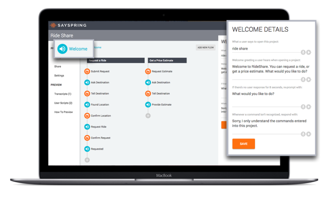 Sayspring, a startup that enables designers to create voice-enabled apps without code ahead of handing over projects to development.