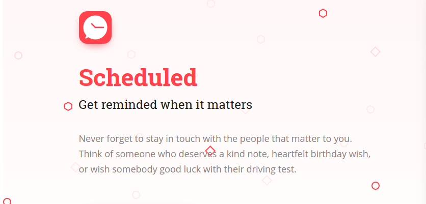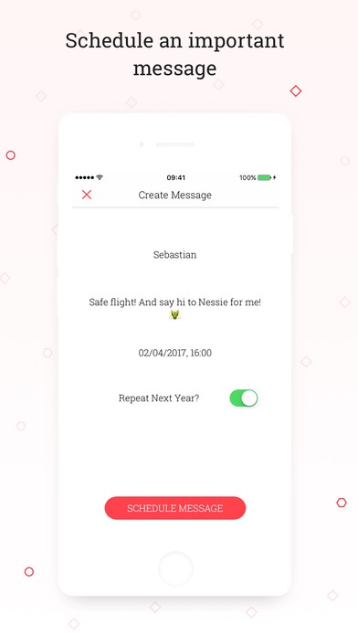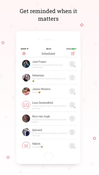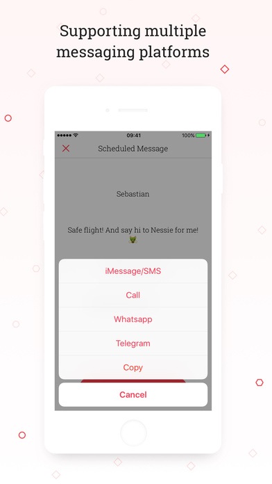 Schedule a message, get reminded when it matters, and stay in touch. We support: iMessage, Facebook Messenger, Whatsapp, Telegram, Twitter and Calling. Never forget to stay in touch with people that matter to you. Think of anyone who deserves a kind note, heartfelt birthday wish, or wishing somebody good luck with their driving test.