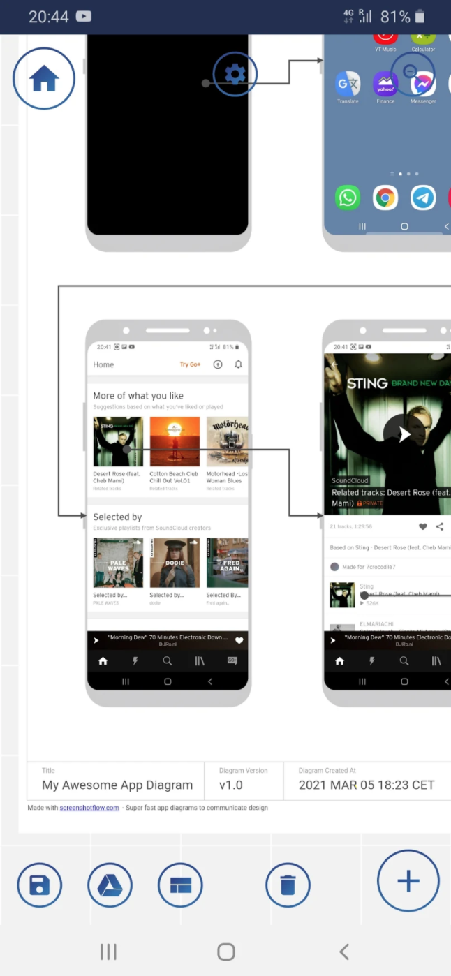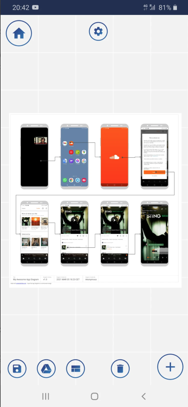 Create a diagram from any app in seconds Map out user journeys only by snapping screenshots and let the Screenshot Flow app do the rest. Your newly created diagram will sync seamlessly with Google Drive ready to be shared or edited further with draw.io. This is a tool that we created for ourselves to make product/UX work easier, and later we decided to make it into a public app. Hope you like it. Please don't hesitate to leave feedback. http://screenshotflow.com