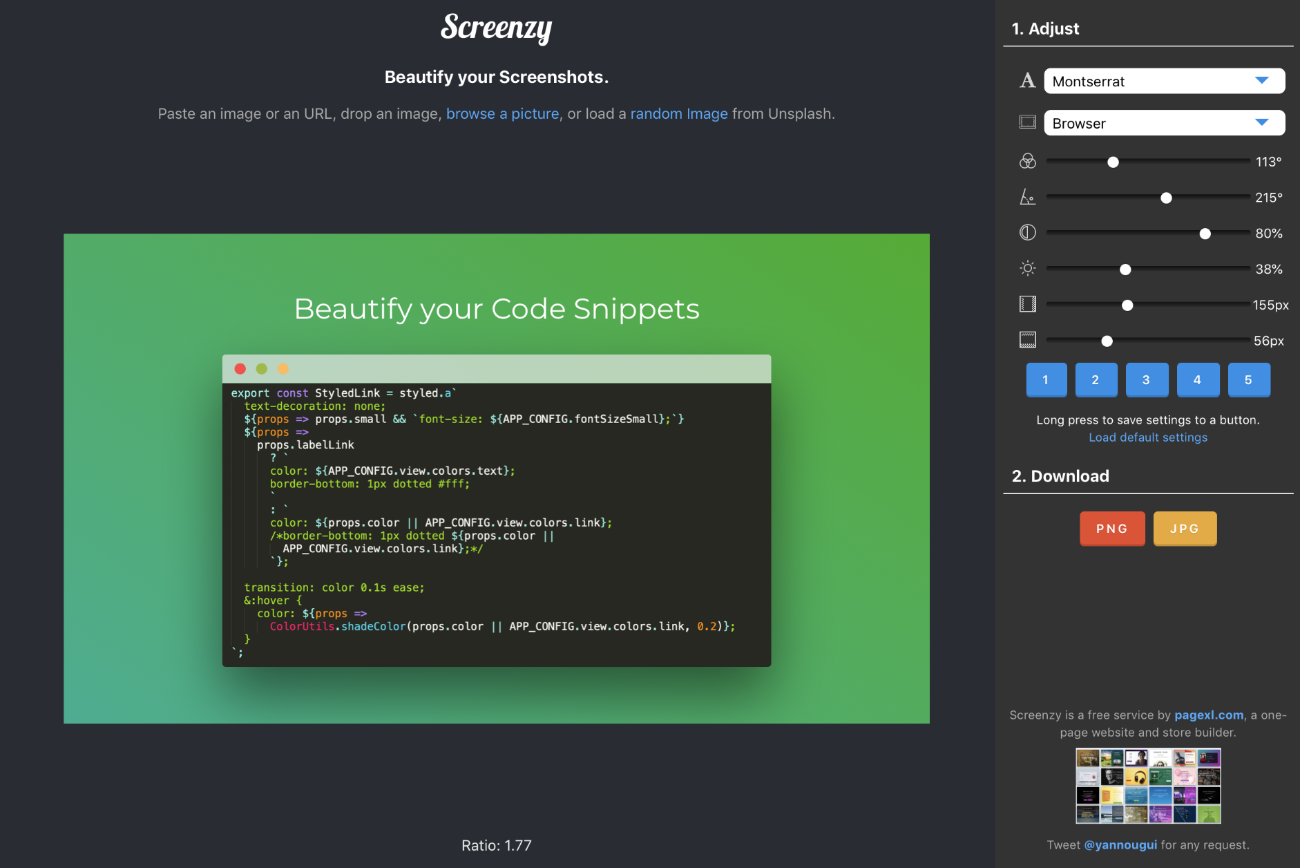 Screenzy is a free tool to instantly transform you pictures and screenshots into beautiful mockups ready to be shared on social media.