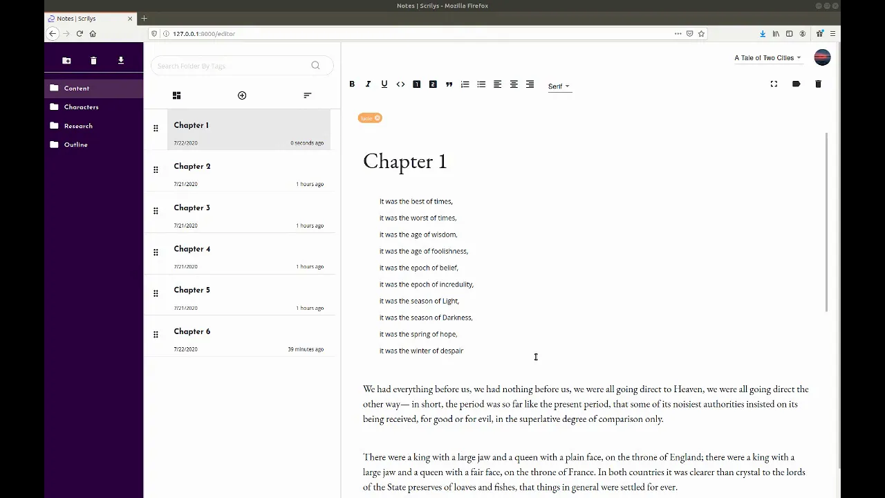 Scrilys is the only writing app you need to tell your story. Write in peace. Outline and organize your book. Export to publish.