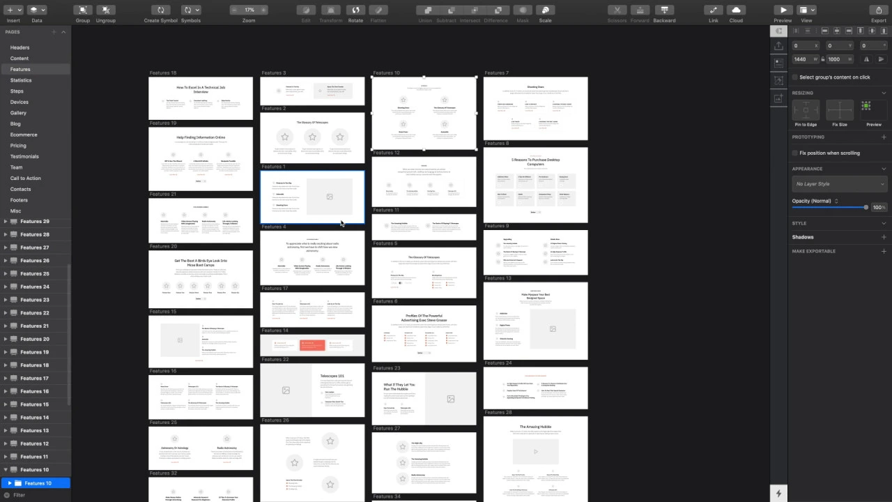 Sections is made up of a large set of screens consisting of popular categories. This web UX screens will help you quickly create a prototype for web services. You can easily customize the style for your project.