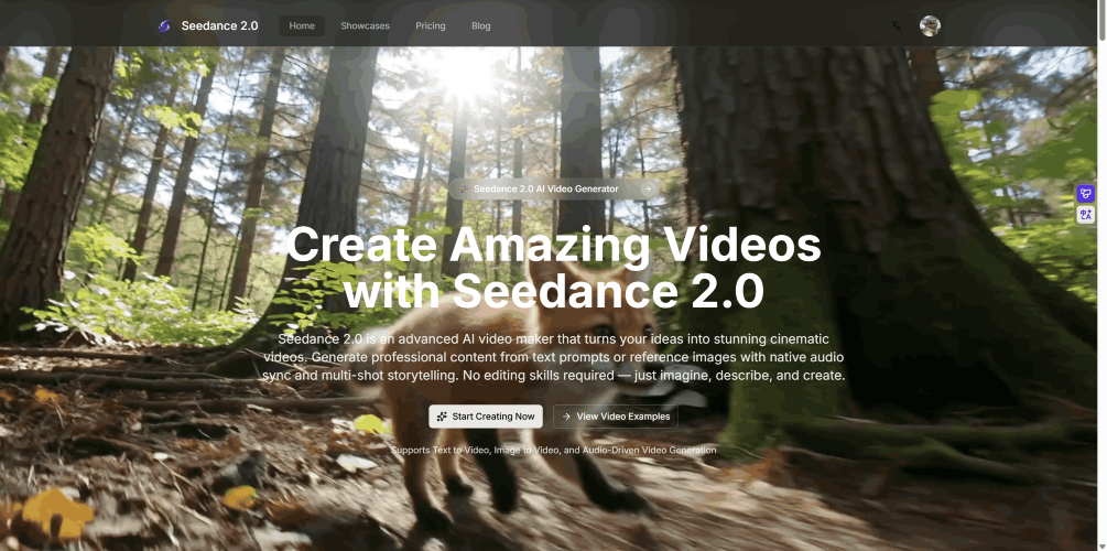 Seedance 2.0 AI Video Generator is a cutting-edge online platform using powerful AI to transform creative ideas into professional videos. With support for text-to-video, image-to-video, and audio-driven generation, the tool enables users to generate dynamic, multi-shot video content complete with synchronized audio and realistic motion. Designed for ease of use, Seedance 2.0 allows creators to produce visually compelling videos without any editing skills, making it ideal for social media content, advertisements, and other digital media projects.