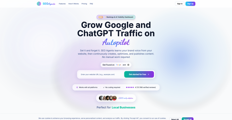 SEO Agento is an advanced SEO automation tool designed to streamline your content creation process. Leveraging AI technology, it learns your brand's unique voice to continuously generate, optimize, and publish engaging content. Simplify your digital marketing efforts and boost your search engine rankings with SEO Agento's innovative solutions that cater to your business needs.