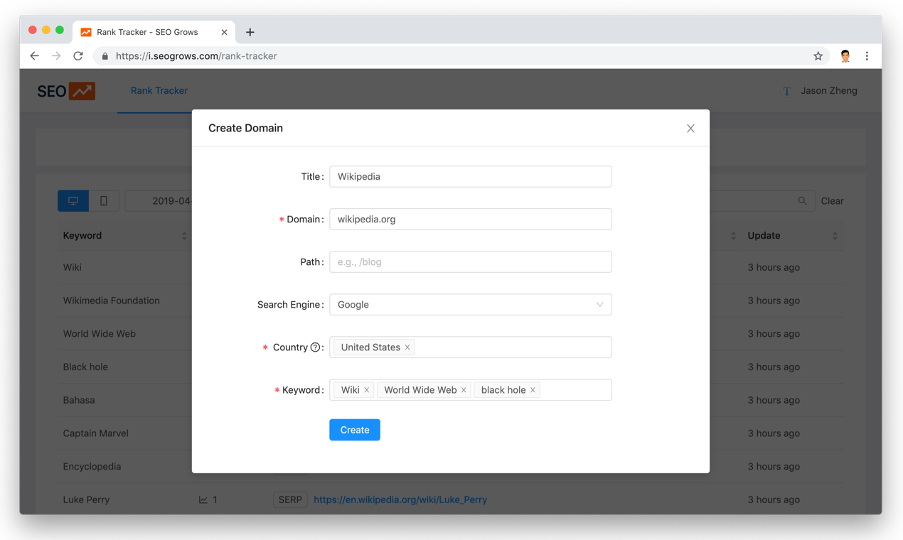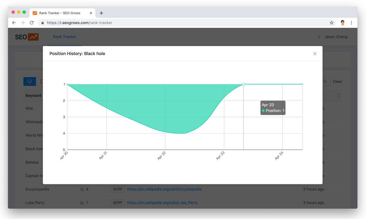 Rank Tracker by SEO Grows could monitor your Google rankings on desktop and mobile across 150+ countries. Yet it's easy to use. Just input your domain and keywords, Rank Tracker will start tracking data. And then you will get graph for rank history of all your keywords.