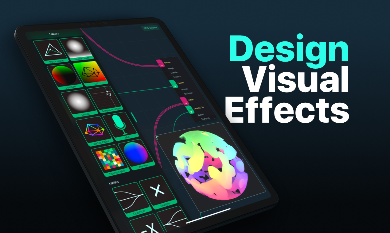 We made Shade. A professional visual effects tool for iPhone and iPad It's available to pre-order on the App Store now for release on March 15 • Carefully designed touch-driven graph UI • Exports to Unity 3D and Codea • Live, physically-based render preview