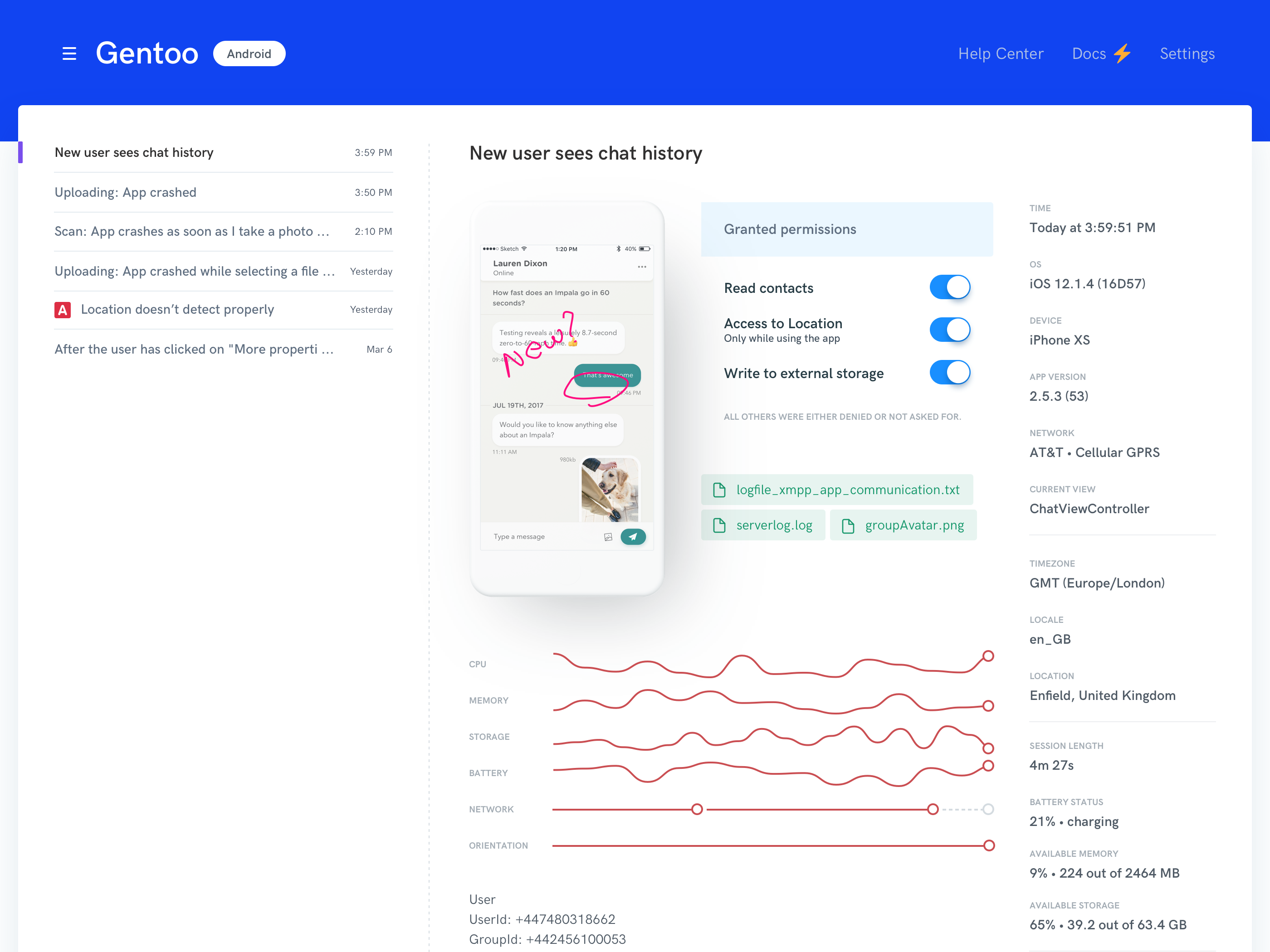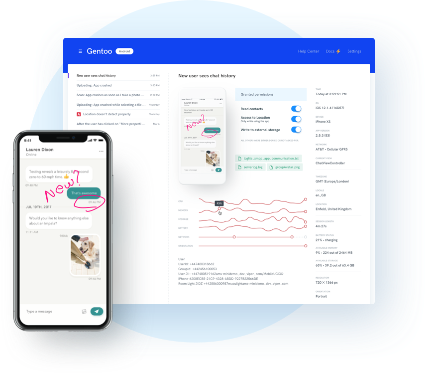 Shake is a bug reporting SDK for iOS and Android apps. Stop receiving emails or WhatsApp messages from your clients saying "Feature X doesn't work" with an attached screenshot. Are we really supposed to debug using only that info? With Shake SDK added to your app, your testers can still report problems under 5 seconds — they just shake your app. But now, our SDK will take all the extra info you as a developer need and will send it to your Shake web dashboard: tester's device model, app and OS version, current View, history of taps, internet connectivity, CPU and memory usage, list of granted permissions ... the list of useful data just goes on. From now on, fix bugs in seconds!