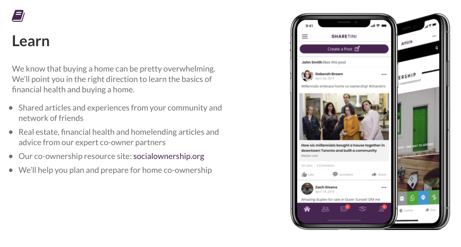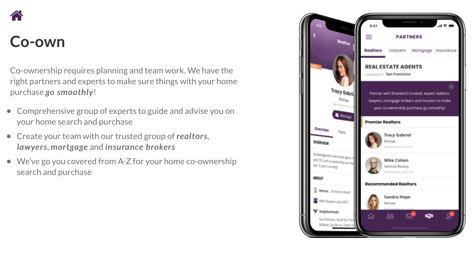 Sharetini, is the free home co-ownership platfrom that is committed to making homeownership in North America more affordable by sharing the cost of purchasing a home or investment with others. We will help you connect with others looking to co-own property, as well as in-depth resources and expert partners that specialize in home co-ownership. Sharetini is real estate dating to ?co-own a home: Think eHarmony meets Linkedin, or Facebook for real estate. This August we launched our iOS mobile app, in the major urban centres across North America: Los Angeles, New York City, San Francisco, Seattle, Toronto and Vancouver. Android is scheduled to launch in October, 2019.