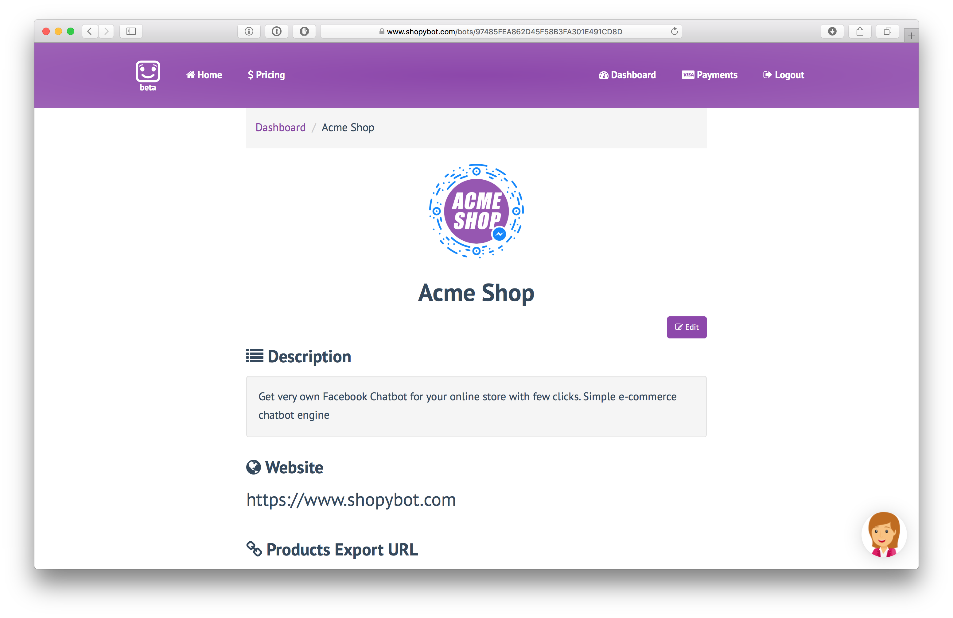 This is platform for creating Facebook E-Commerce chatbots. Works with major E-Commerce engines