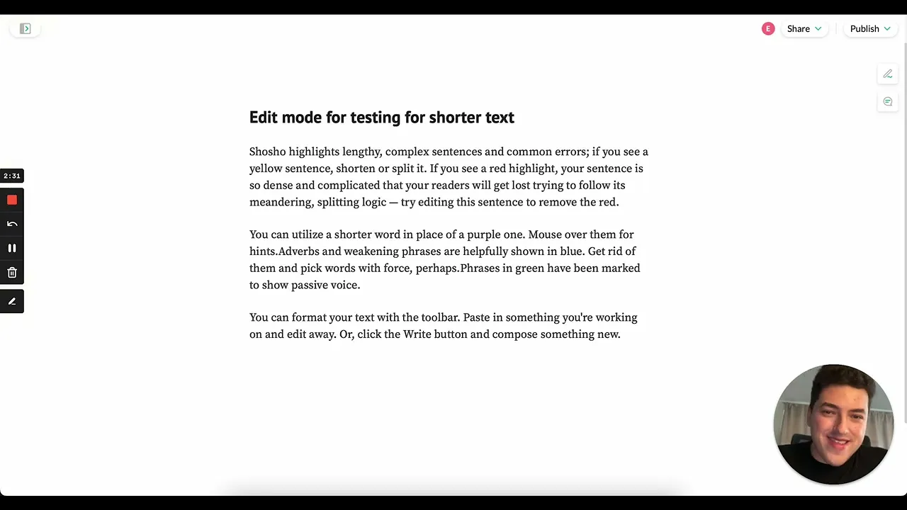 Shosho is a web text editor designed for writing, editing, collaboration and publishing your stories. Write your story, edit your mistakes, collaborate with your friends or colleagues and publish your blog on shosho.co/@yourname