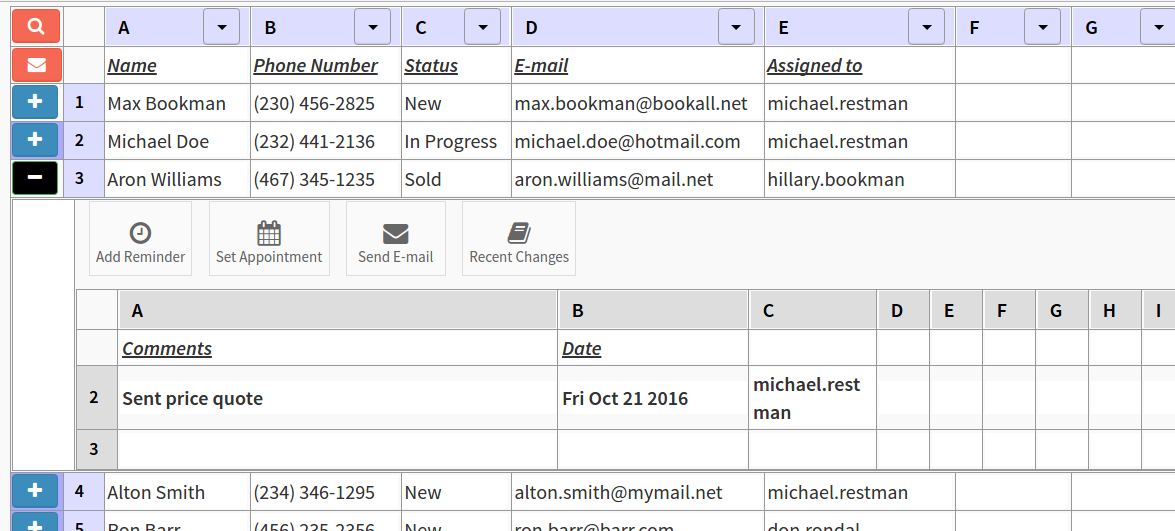 Simple CRM System is a super-simple CRM that looks like a spreadsheet. Just copy your Excel data to the CRM and benefit from reminders, appointments, team collaboration, customer history, advanced search and more. It's as easy as using Excel! Features available: - Set reminders and appointments in your calendar from the CRM - Collaborate on your spreadsheet with your team - Send e-mails using Gmail or Outlook - Track e-mail opening - Make phone calls using your phone or Skype/Facetime from the CRM - View history for spreadsheet cells and see who changed what - no more "who deleted this" - Make calculations (SUM,AVG,MAX,MIN,COUNT) to calculate sales and other values - View a list of tasks you need to do, connected to your calendar - Make advanced search on your spreadsheet - Save your common search queries to build your dashboard (what's new? what's open? what's closed?) - So simple