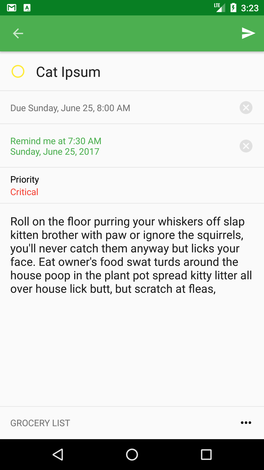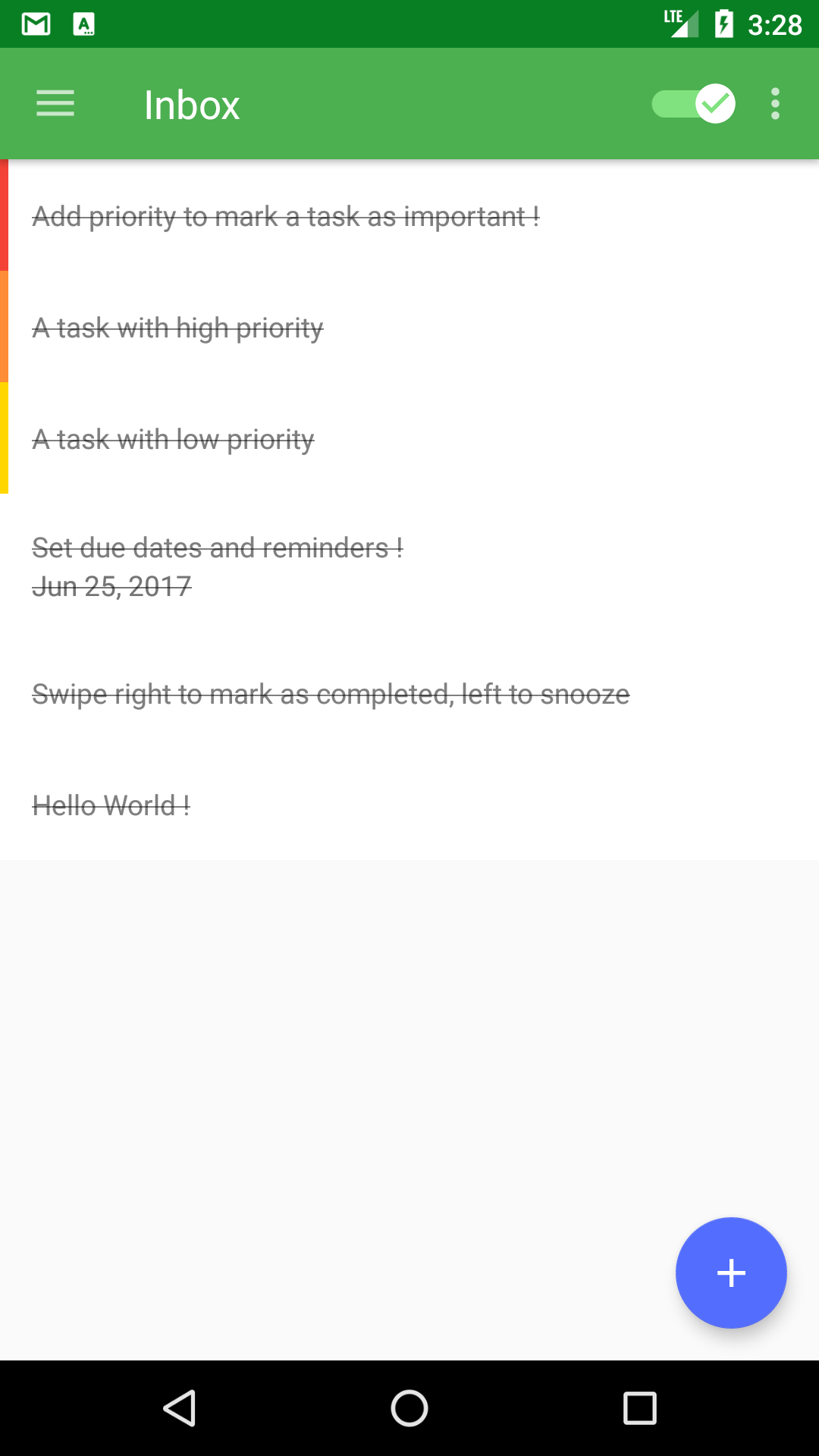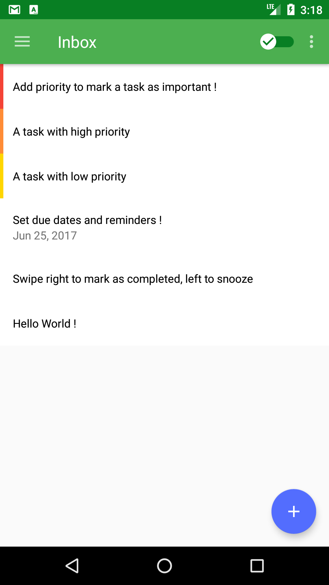 Hello everyone ! Simplist is a lightweight Task, ToDo List and Reminder app for Android. It was designed to be easy to use and comes with very simple yet powerful features to help you in your day to day life. Features highlights * Set reminders and due dates * Set priority levels and add notes * Create lists to group tasks * Swipe right and left to manage tasks: Swipe right to mark completed or uncomplete, and left to snooze or delete * Sort your tasks by priority, name or due date * Tasks are synchronized across all your devices and available offline I am planning on adding more features such as widgets, recurring reminders, location reminders, Android Wear support, a web app, possibly an iOS Version and many more Feedback is very much appreciated ! Thank you !