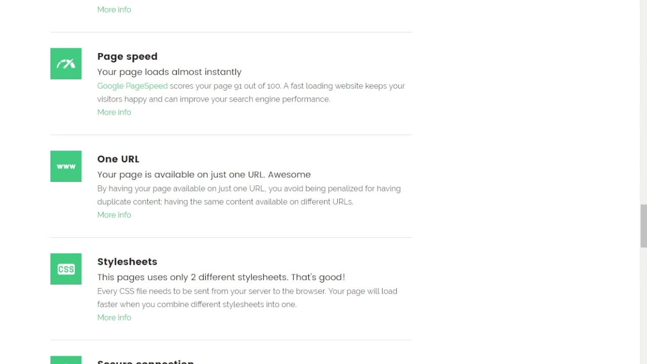SiteGuru crawls your website and checks every page for issues. We look for broken links, slow pages, suboptimal meta tags, invalid HTML and much more. This results in an actionable report that helps you improve your website in just a few minutes. Weekly reports help you stay on top of your content. The result: happier users, and more SEO traffic.