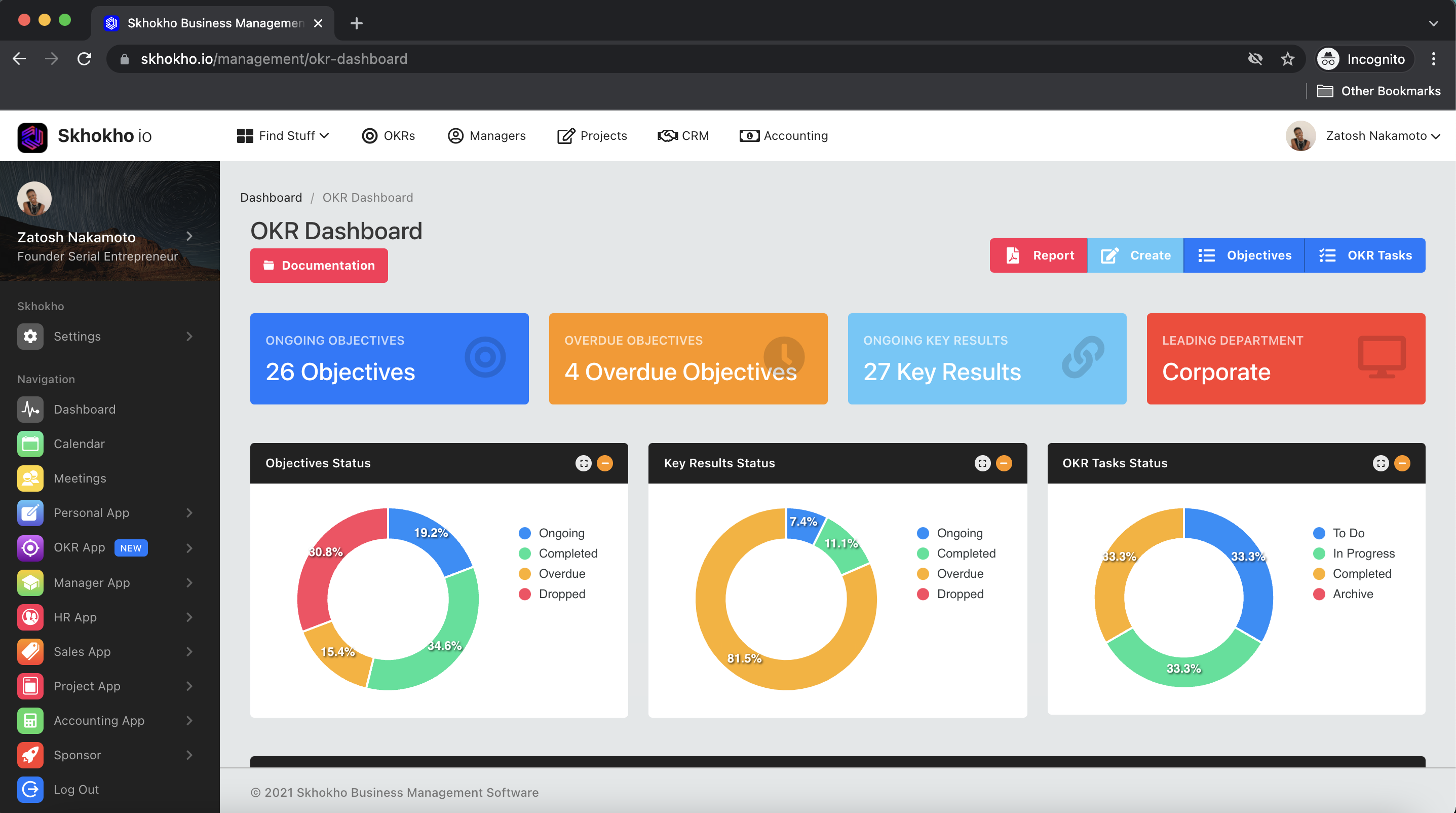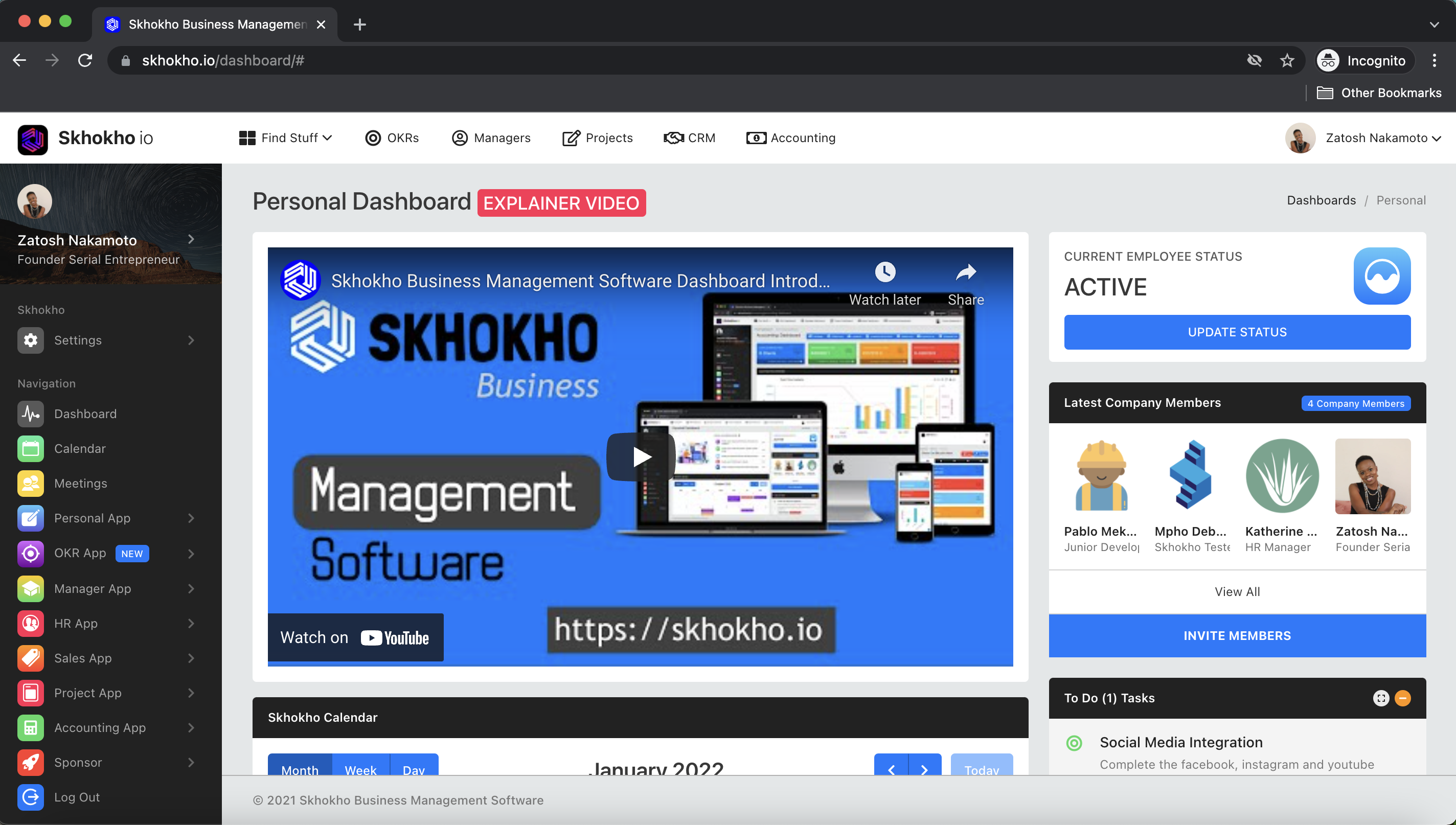 Skhokho is a Business Management Software created specifically for Small and Medium Sized images. It contains the majority of applications that small businesses use on a day to day , in an integrated user-friendly and convenient platform. Skhokho contains the following software: Meeting software, Human Resource Management, Sales and CRM, Project Management Software, Accounting Software and Objective Key Results (OKR) Software.