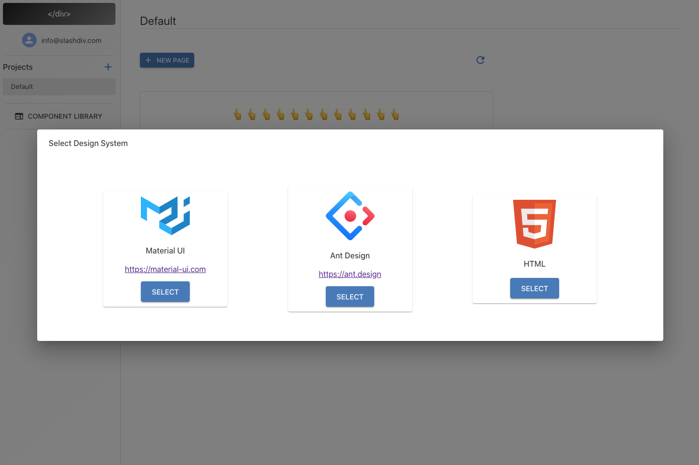 Slashdiv helps frontend developers create amazing React JS based UI layouts using a visual builder. Problems: - In order to build high quality UI, frontend developers need to juggle design systems, CSS, browsers, screen size and so much more to achieve the best designs - Developers need to ensure several constraints are met: no overlapping elements, works across screen sizes, scrolling behavior, margins/padding/colors/fonts match input designs and several more SlashDiv provides a simple visual builder that helps frontend developers with these problems. Advantages: - Visual builder provides instantaneous visual feedback while building UI - No annoying compile delays while changing props and styles. - Ease of experimentation - Easy to share and collaborate with other developers and designers - Save and reuse components across your projects (Pro feature) - Configure and experiment with themes (currently for Material UI only)
