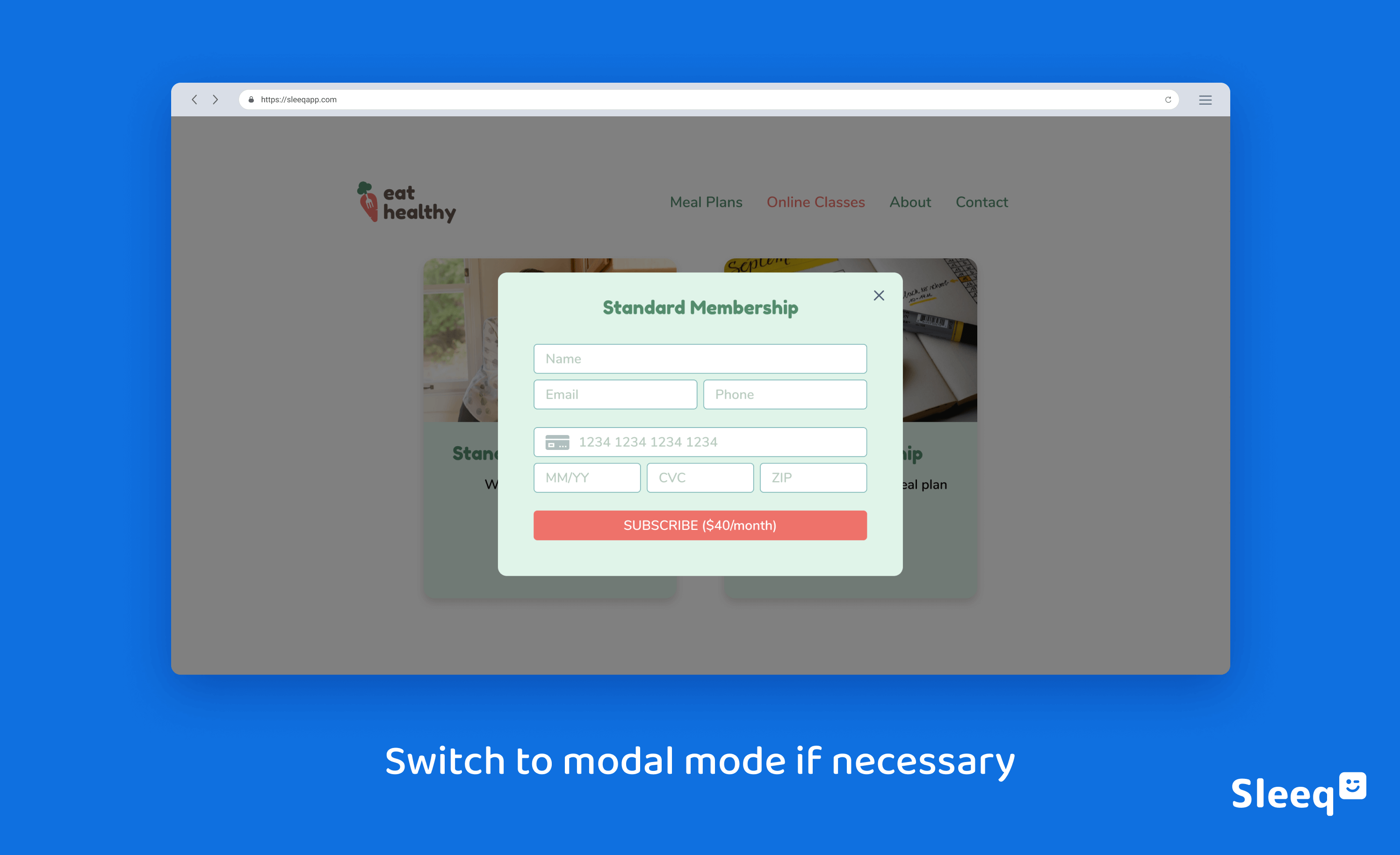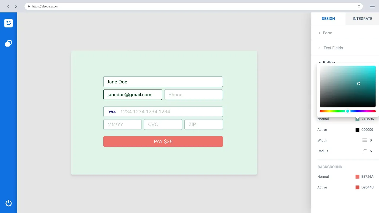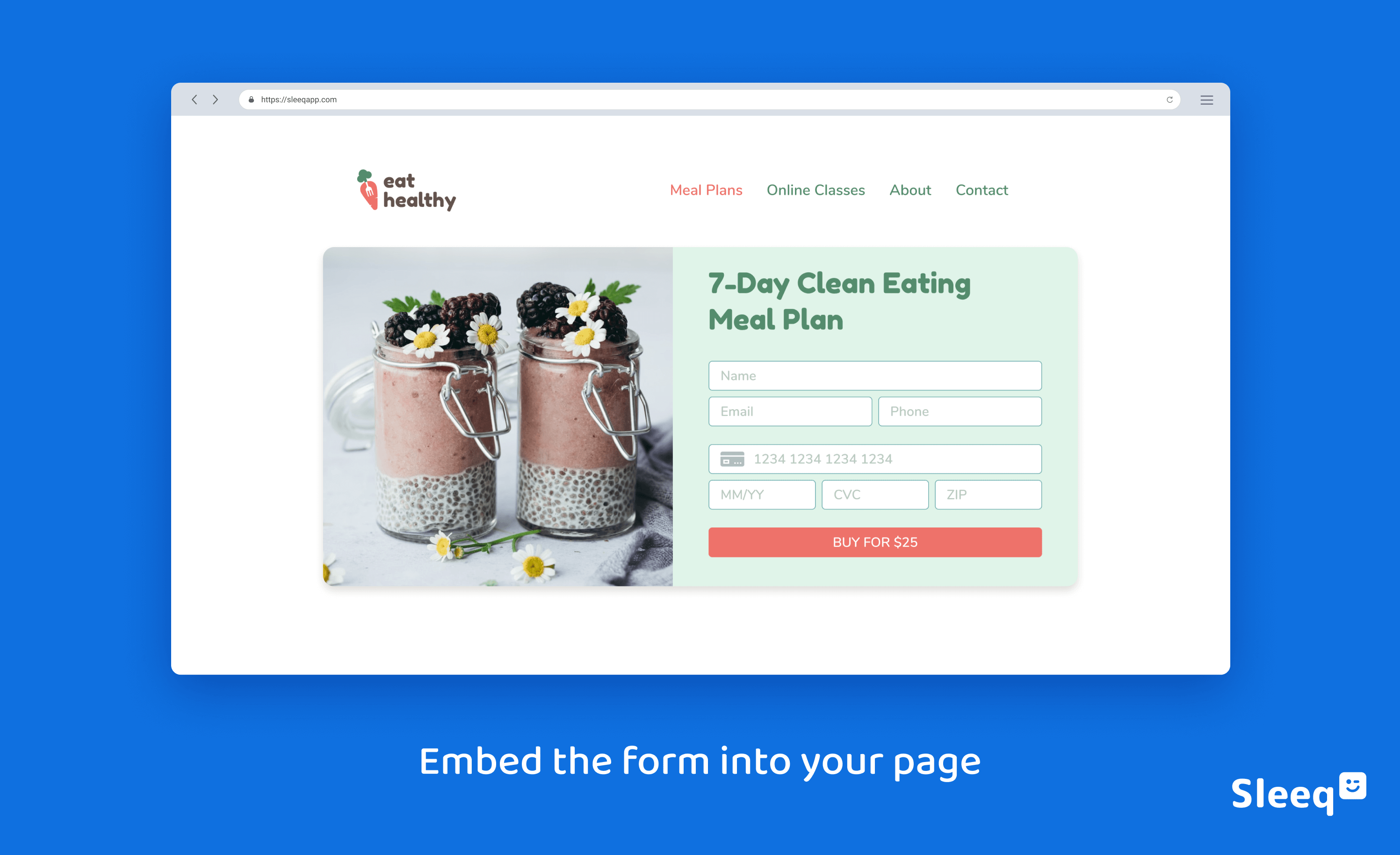 Sleeq is a web app that helps you create stylish payment forms and start collecting payments with Stripe in minutes. Pick a template from the gallery, customize it to match the style of your website, connect to Stripe in a few clicks, and paste the generated script on your page. No coding, fast, easy, and beautiful!