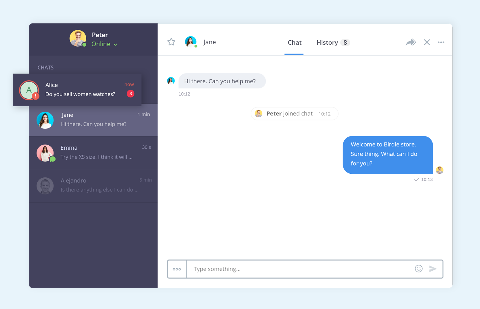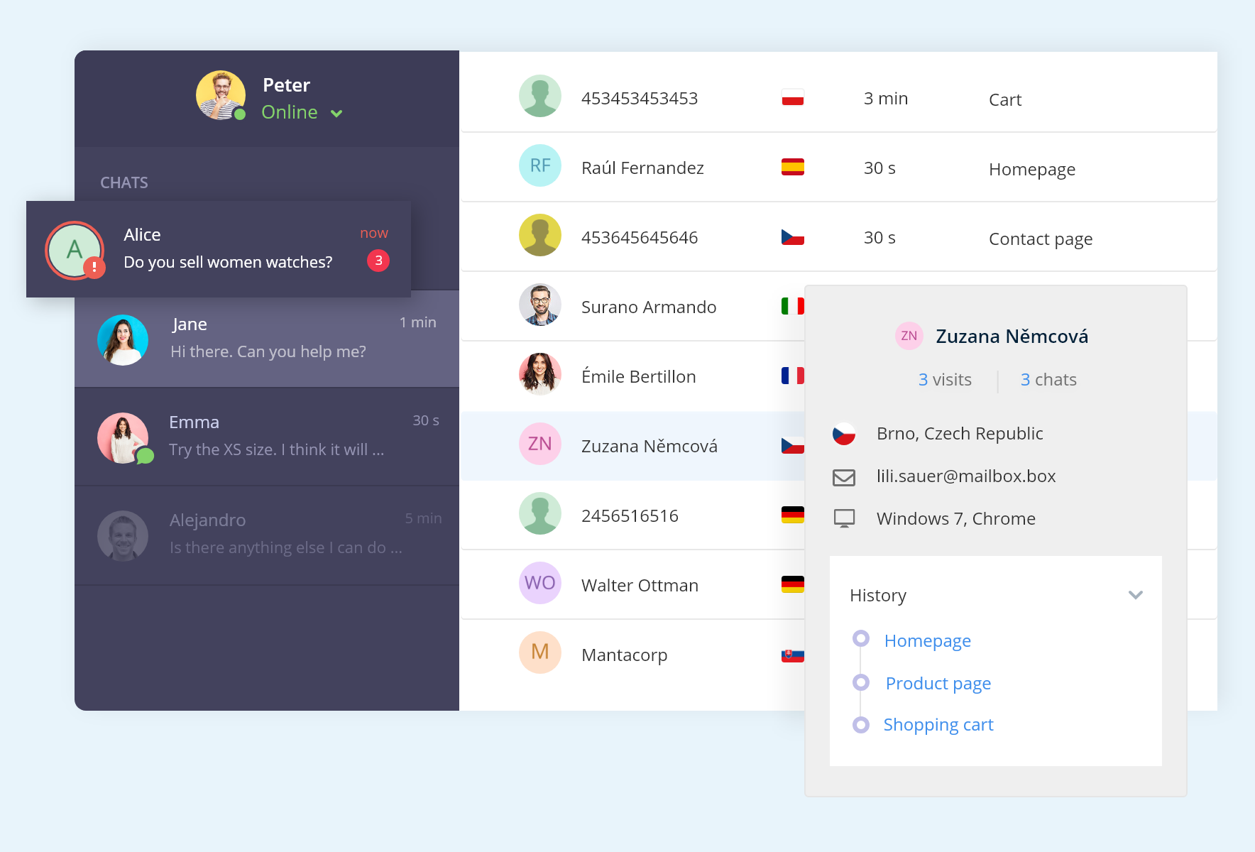 Smartsupp chat enables you to start a personal conversation with your visitors and turn them into happy customers. We are one of the most popular chat tools with 54 000 active users. Take advantage of our advanced features like automatic messages, visitor recording or detailed statistics. Your customers are browsing your website right now. Create a free account on www.smartsupp.com and start chatting with them today.