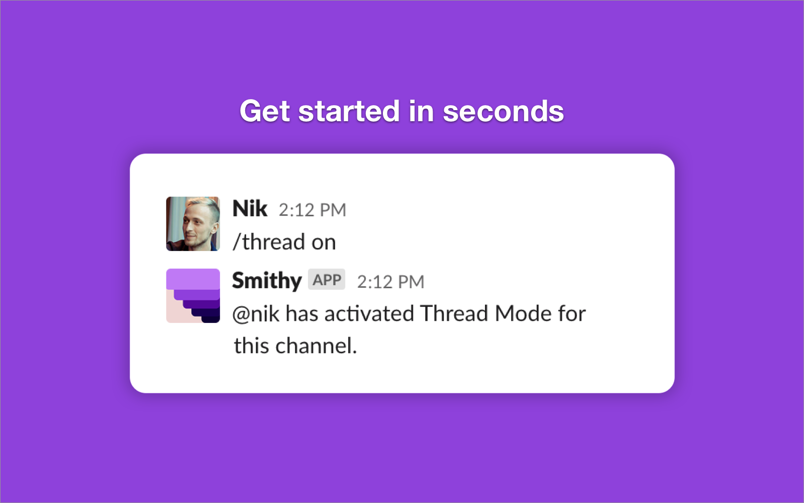 High-volume, disorganised chat can hurt productivity and foster team misalignment. Smithy is an app for Slack that keeps things organised by ensuring all conversations in designated channels are kept threaded and decisions are clearly surfaced. * Keep channels on-topic and easy to follow by marking them as threads-only using Smithy. Conversations will be kept threaded, automatically. * Decisions and results of discussions can get lost. Smithy makes it easy to surface these and make them clear at a glance in the channel to keep your team aligned. Smithy-created threads require a resolution message by default when closing. * Start new threads with a subject and the first message with a simple slash command. The thread will be authored by you personally and will appear distinctly as a threaded conversation. * Mark threads as closed with a click of a button available in each thread to mark a discussion as resolved and easier to keep track of at a glance. * You can also enable the option to auto-close conversations that have been inactive for a period of time to keep things even cleaner in your channels. Smithy has been built by engineers from a fully remote, distributed company. We've lived through the pains of having to keep track of and manage multiple channels and keeping conversations organised. You're in good company.