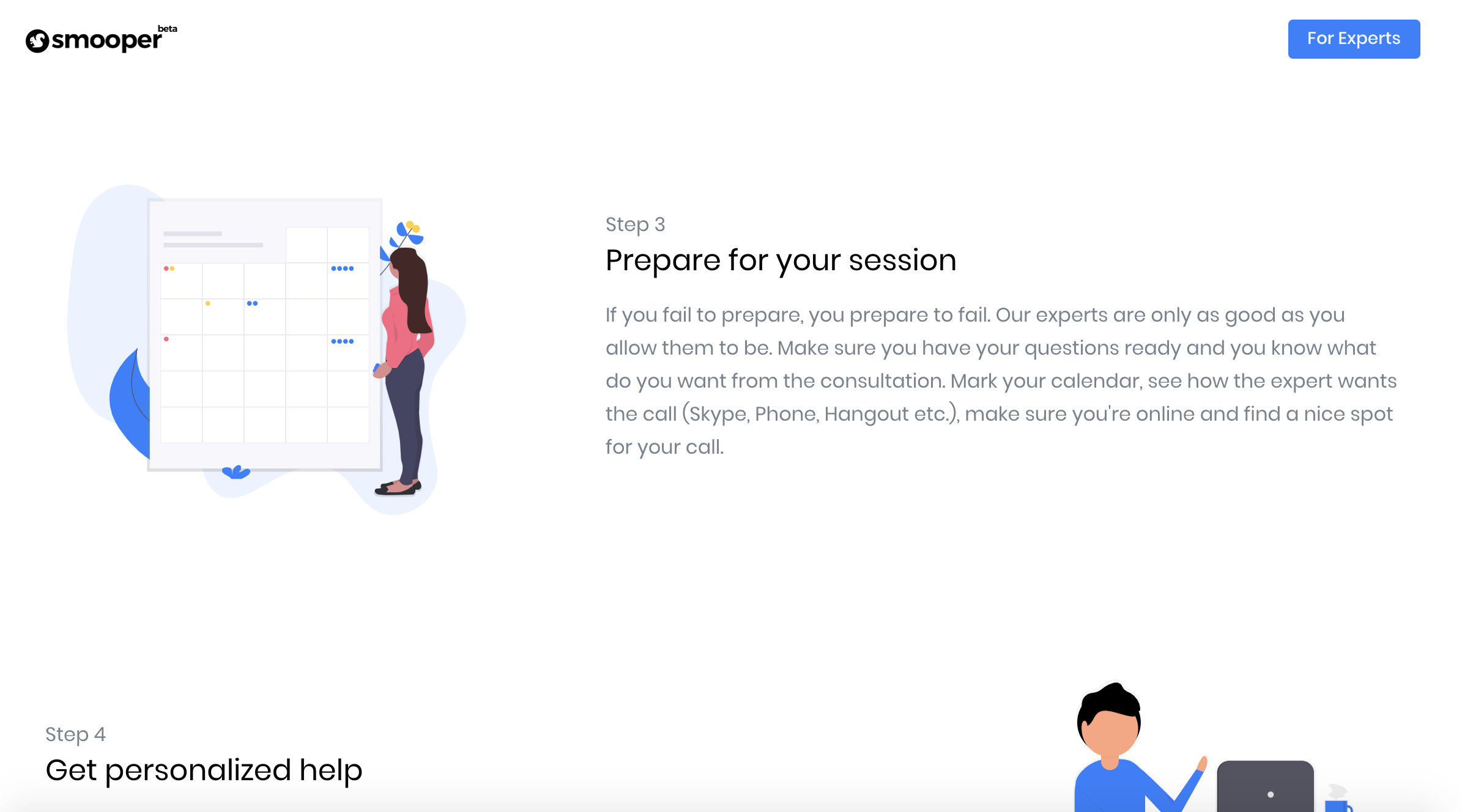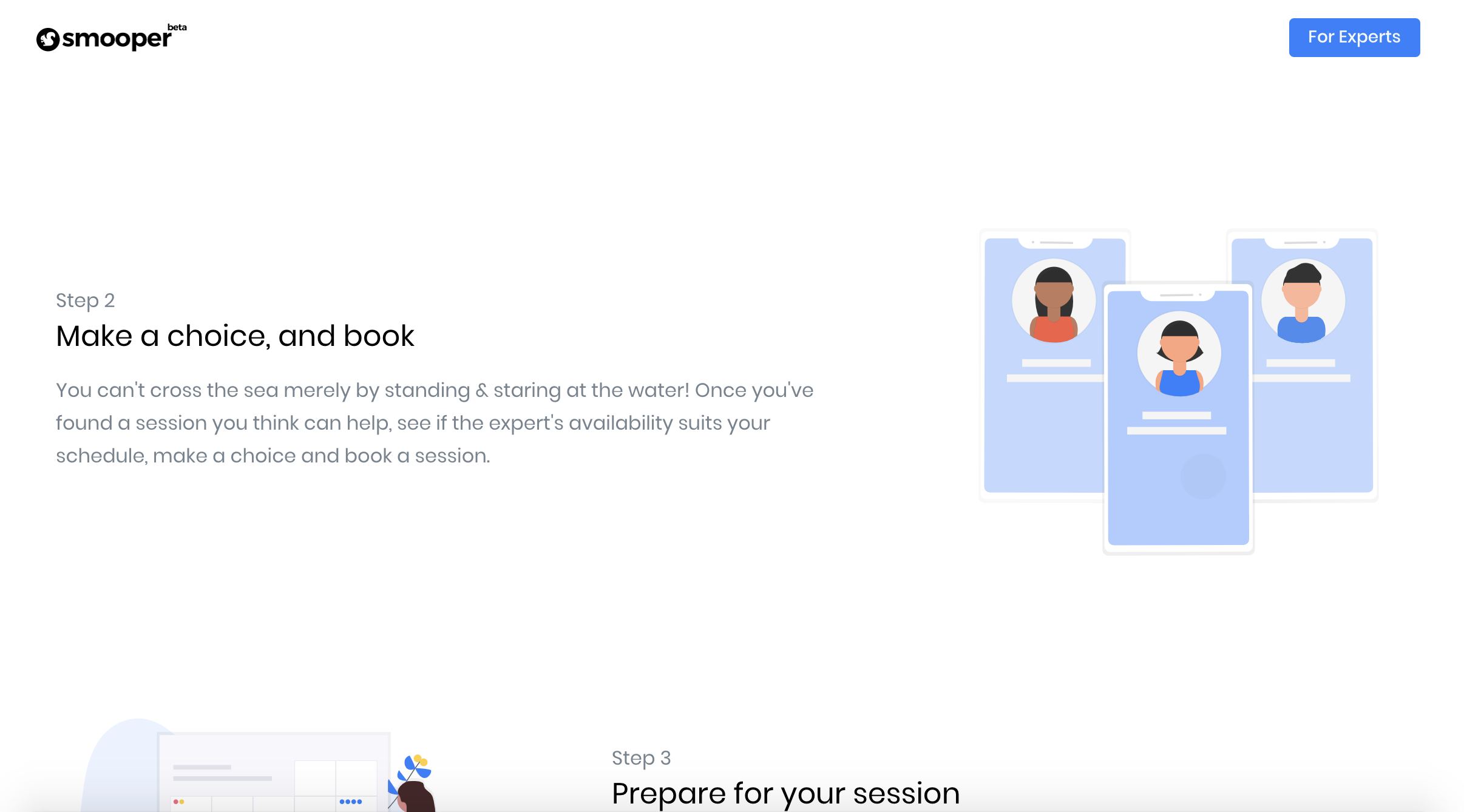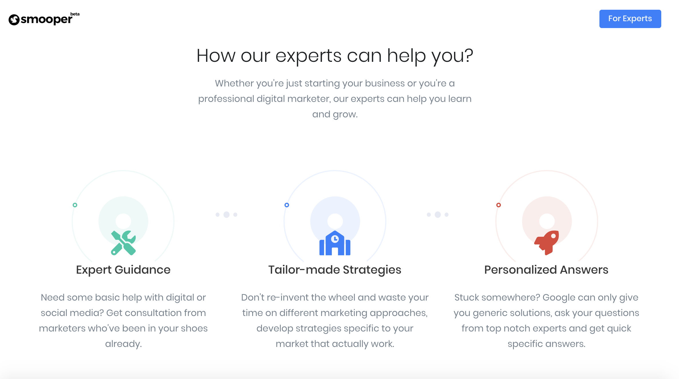Smooper is a platform for digital marketers and small business owners. Marketerscan set their availability and use the service in their existing sales funnels to provide appointment booking. Meanwhile, they can also get discovered on our search platform by small business owners to solve problems, get hired and paid.