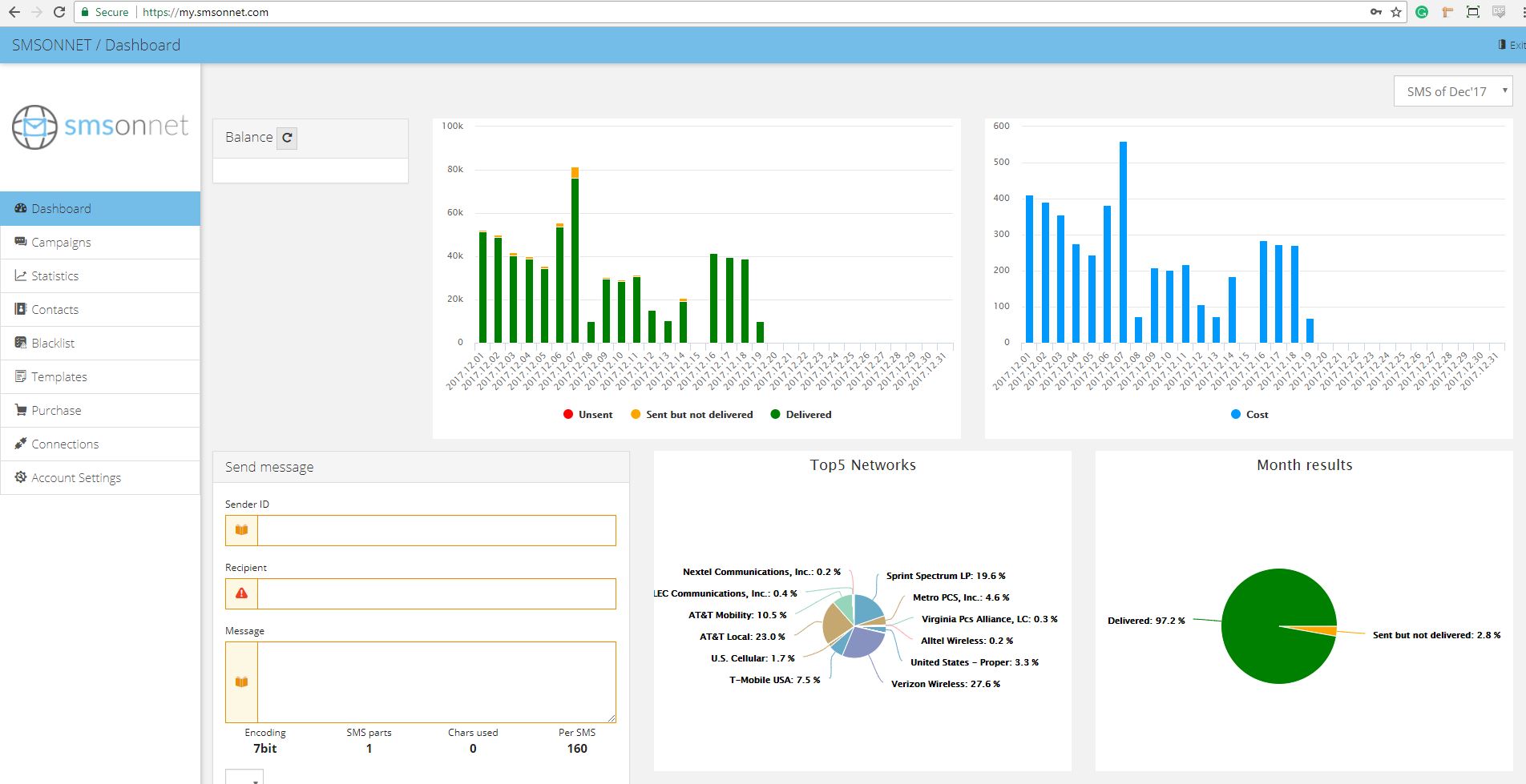 SMSonnet is an online platform for management of SMS advertising campaigns for businesses and advertising agencies to promote their services and products on the customers' database. The website has a wonderful user experience starting from simple Sign up process, after which one gets to the Client cabinet to start setting up SMS campaign. The platform offers cheapest prices on SMS on global destinations. 1. Create your account 2. Choose the plan and top up the account (via PayPal) 3. Simply load your Client’s database you want to send the messages to 4. Create SMS texts with your offer, information 5. Schedule or run SMS campaign immediately 6. Get real-time report of SMS delivery