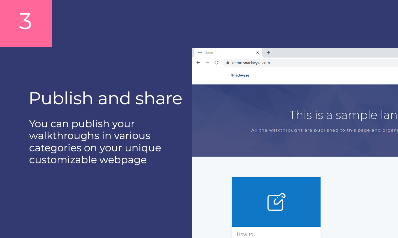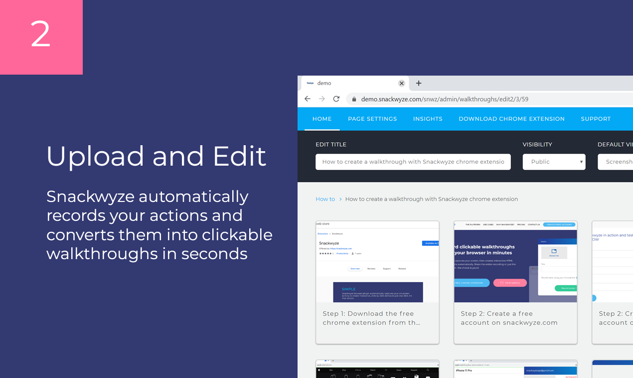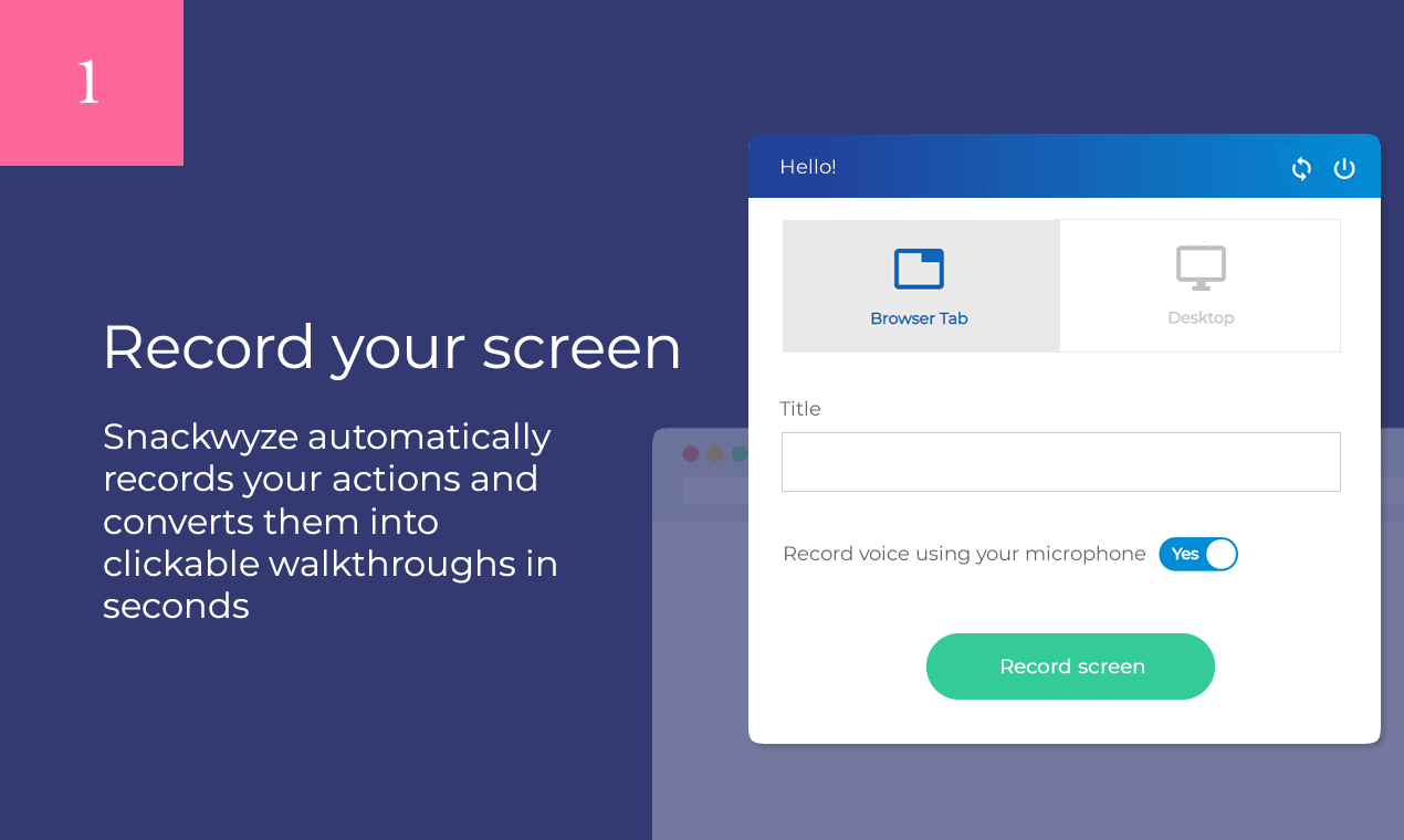 Snackwyze records your screen, then creates interactive HTML walkthrough demos automatically. They work great for for SaaS product demos, online tutorials, flipped classrooms, technical support, user-guides & many other similar use cases.