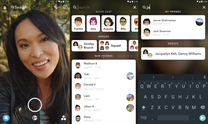 Snapchat just made it much easier to navigate the app and find friends, groups, Discover publishers and Our Stories with a universal search bar that’s always accessible at the top of the app. Launching today for some people on Android and rolling out soon to all iOS and Android users, the search bar lets you dig out of Snapchat the best content and conversations. First and foremost, the visual style and “Quick Chat” suggestions will let you hop to a particular friend’s message thread or story a lot faster. With the new search bar, you can jump to your own profile by tapping your Bitmoji on the left. If you tap a friend’s auto-suggest card or search result, you’ll start a chat with them, or you can tap their Story thumbnail to instantly start watching it full screen.