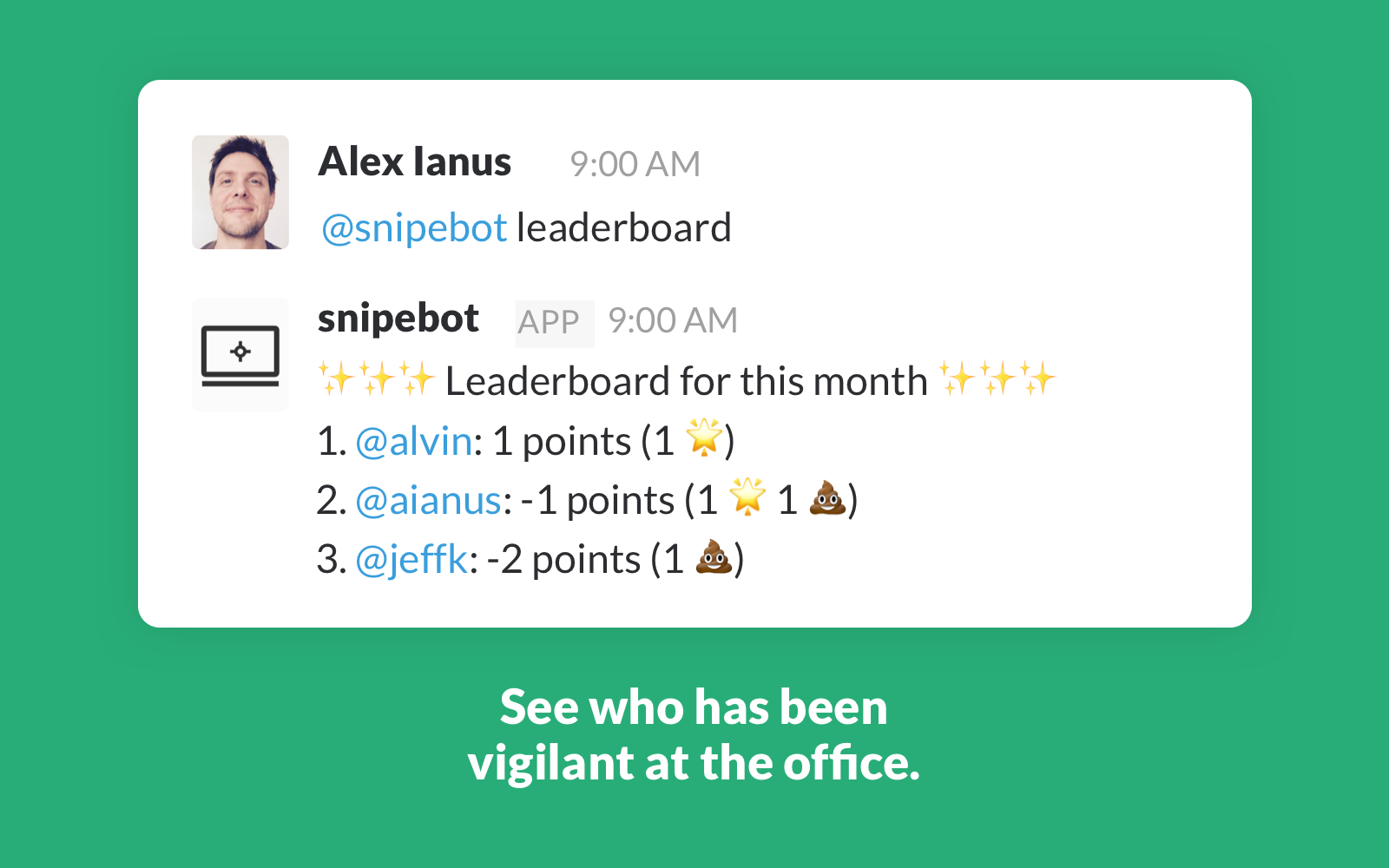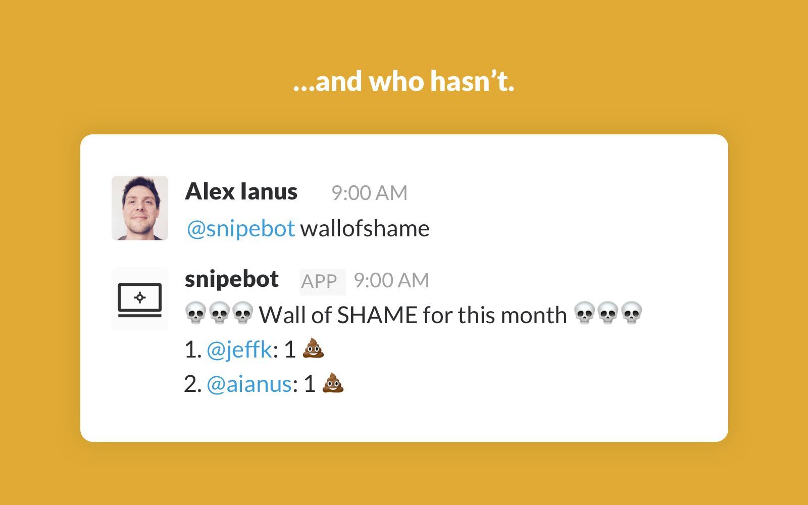Sniped is a fun Slack app that increases security awareness at the workplace by getting your employees to lock their workstations. ‍ If you find an unattended, unlocked device, type /snipe and your own username on their Slack. Then, lock their laptop. You get a star. They receive a warning and a notification to a public channel, so that they’ll never forget to lock their laptop again.