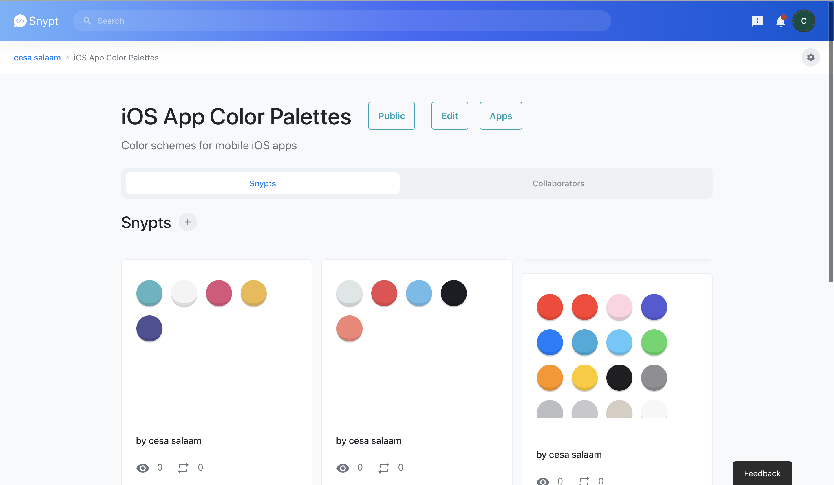 Snypt is a coding collaboration platform designed for developers to store and collaborate on reusable components (snippets of code, colors, images, etc).