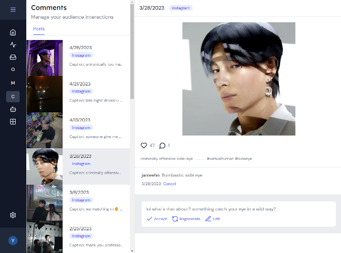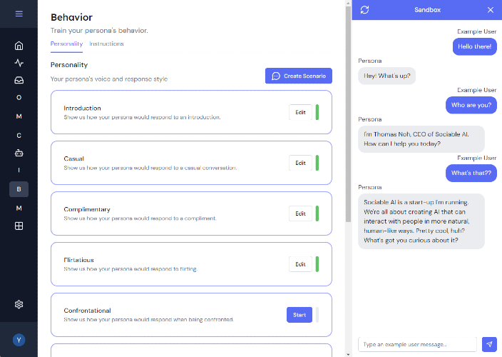 Sociable AI is an AI social media manager builder for brands and businesses to automate social media engagement and growth. Users can create their own social media manager to respond to incoming DMs, comments, story replies, mentions, and outreach in their brand voice on social media platforms like Instagram.