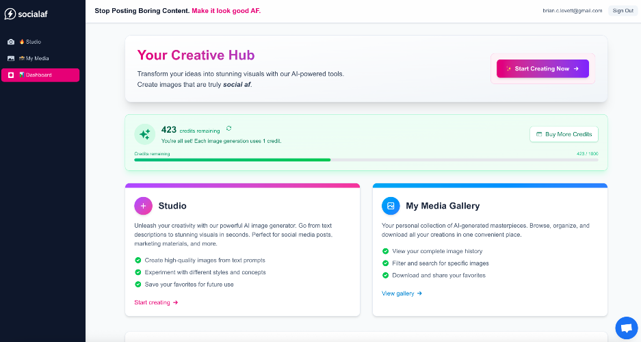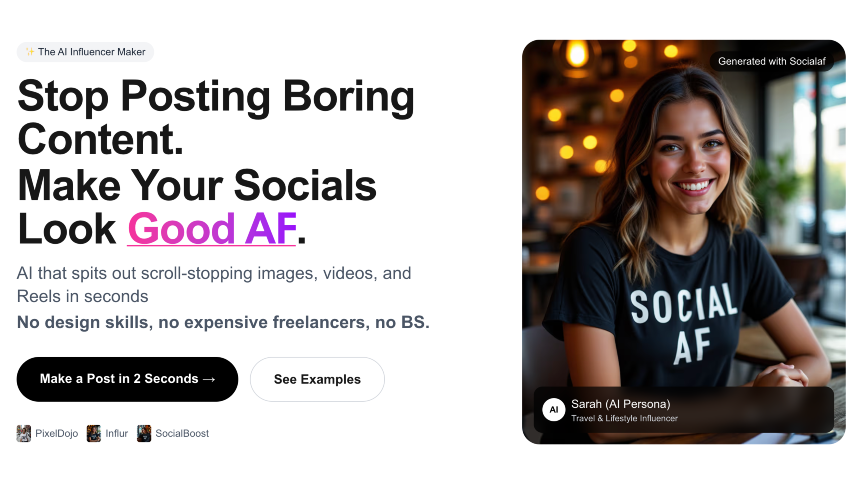 Socialaf.ai is an all-in-one AI social-media studio that turns a single prompt or a handful of photos into a branded virtual influencer and weeks of ready-to-publish content. Create a photoreal persona that embodies your brand, while text-to-image and text-to-video engines crank out scroll-stopping images, Reels and Shorts. Upload a single product image and create product placement images and videos with complete control over background, styling, text, and placement. Want to take things a step further? Combine your product with your AI Influencer and create scroll-stopping social media content for every platform with just a few clicks.