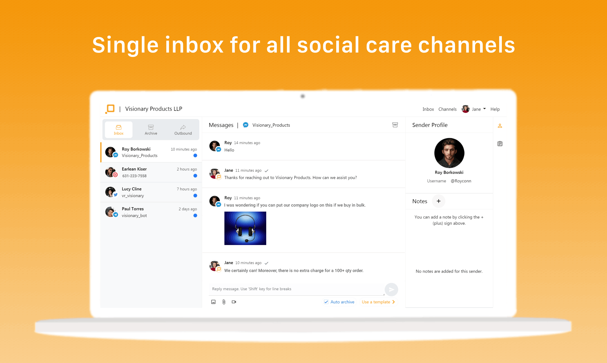 Sociocs is a multi-channel inbox for customer communication. Users can connect their social, messaging and review accounts on Sociocs to provide customer care from a single inbox. We currently support below communication channels: - Facebook Messenger - Facebook chat plugin for websites - Facebook post comments - Facebook reviews - SMS (with Twilio) - Google My Business reviews - Google questions & answers - Google Play reviews (Android app reviews) - WhatsApp - Telegram - Viber