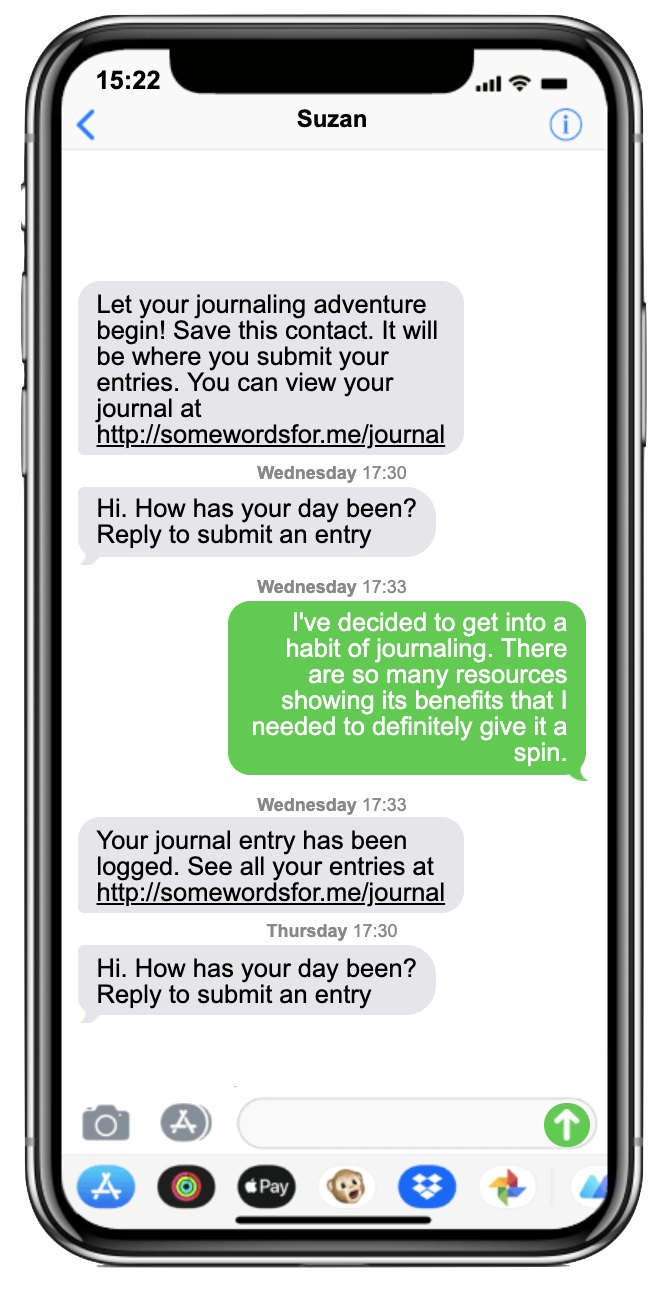 Simple journaling you'll be able to stick to. Sticking with a journaling habit is difficult. We're here to help. Our reminderbot will email or text you a journal reminder every day, you simply reply to the message to log an entry. Your submissions are then stored privately and securely.