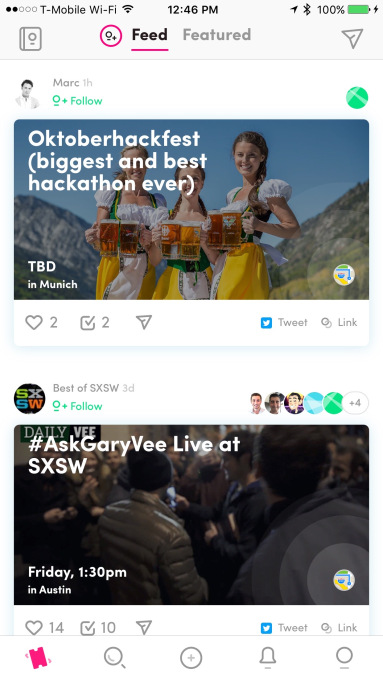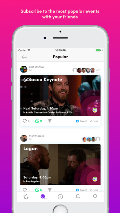 Soon makes it easy to: - Discover events featured by the Soon community - Get a notification when an event goes live - Build a community of followers by climbing the Leaderboard - Start a conversation with friends so all the planning can happen in one place