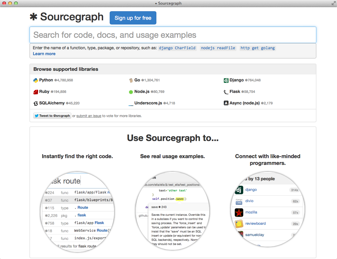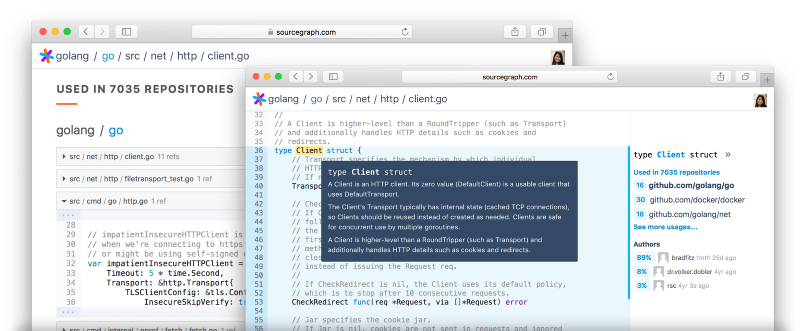 Sourcegraph Server gives your developers code search and intelligence across all your company’s code. Integrated with multiple code hosts, editors, and code review tools.